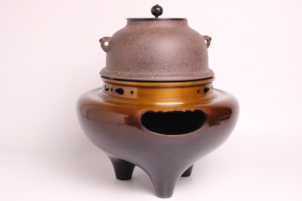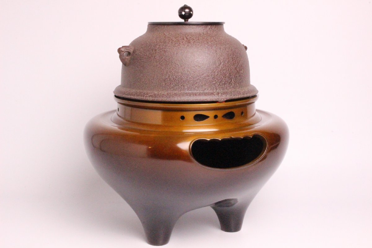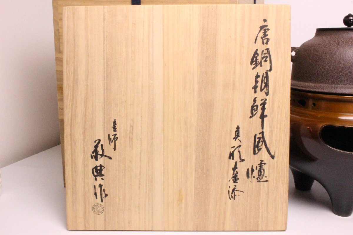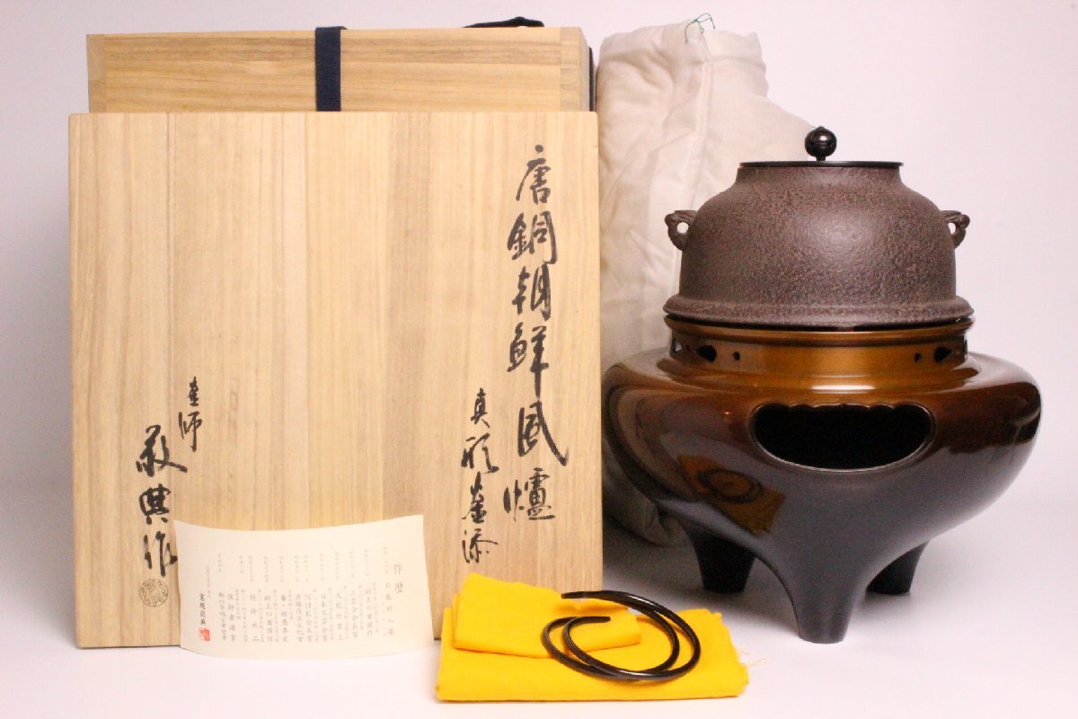 高橋敬典 作(未使用)唐銅朝鮮風炉 真形釜添「共箱・共布・布団・栞・釜鐶」