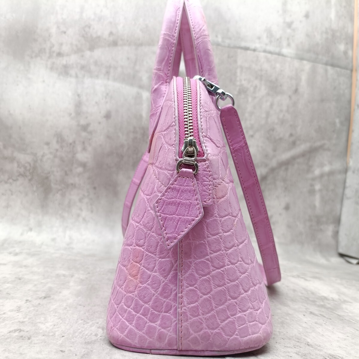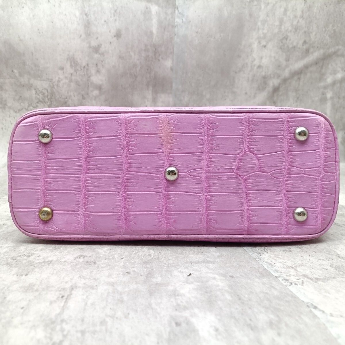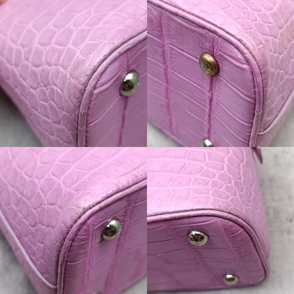 金属のスレ、若干のスレ等使用感はありますが丈夫な作りのパステルカラークロコダイルバッグ。