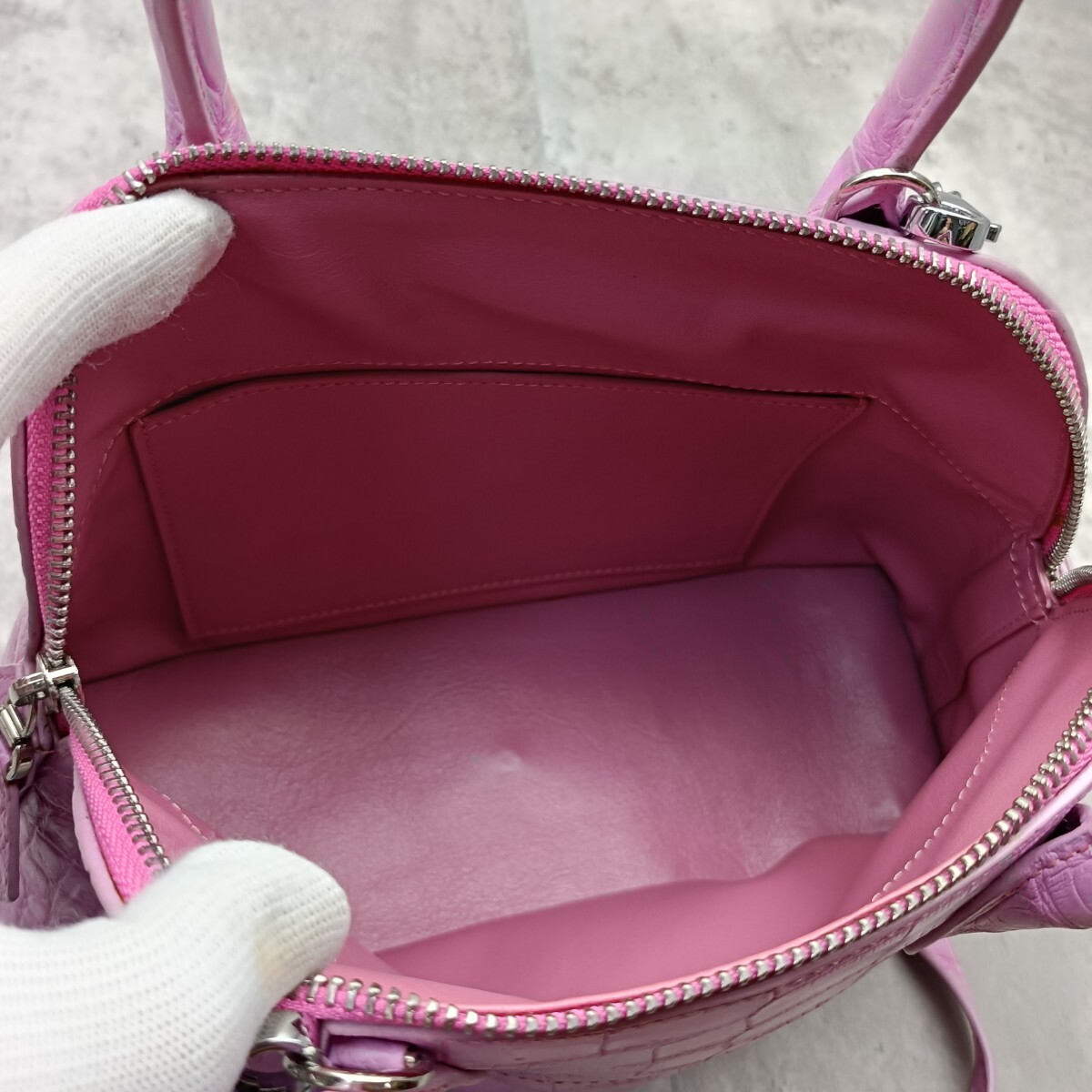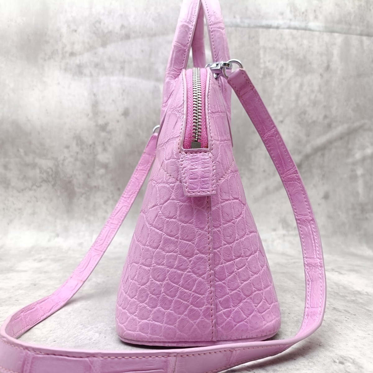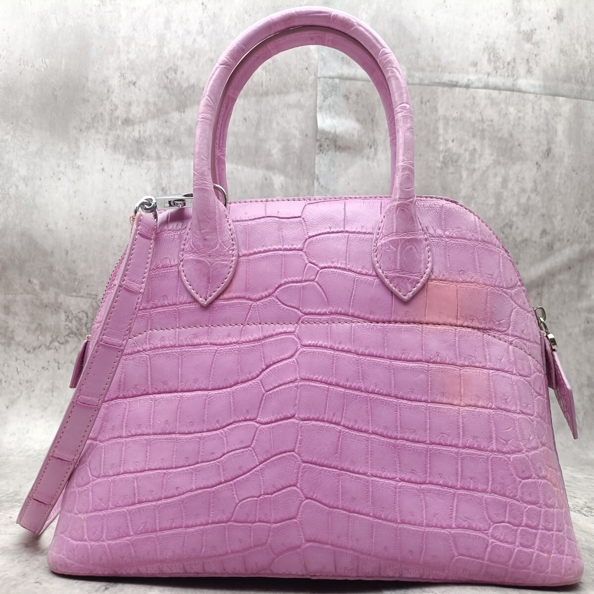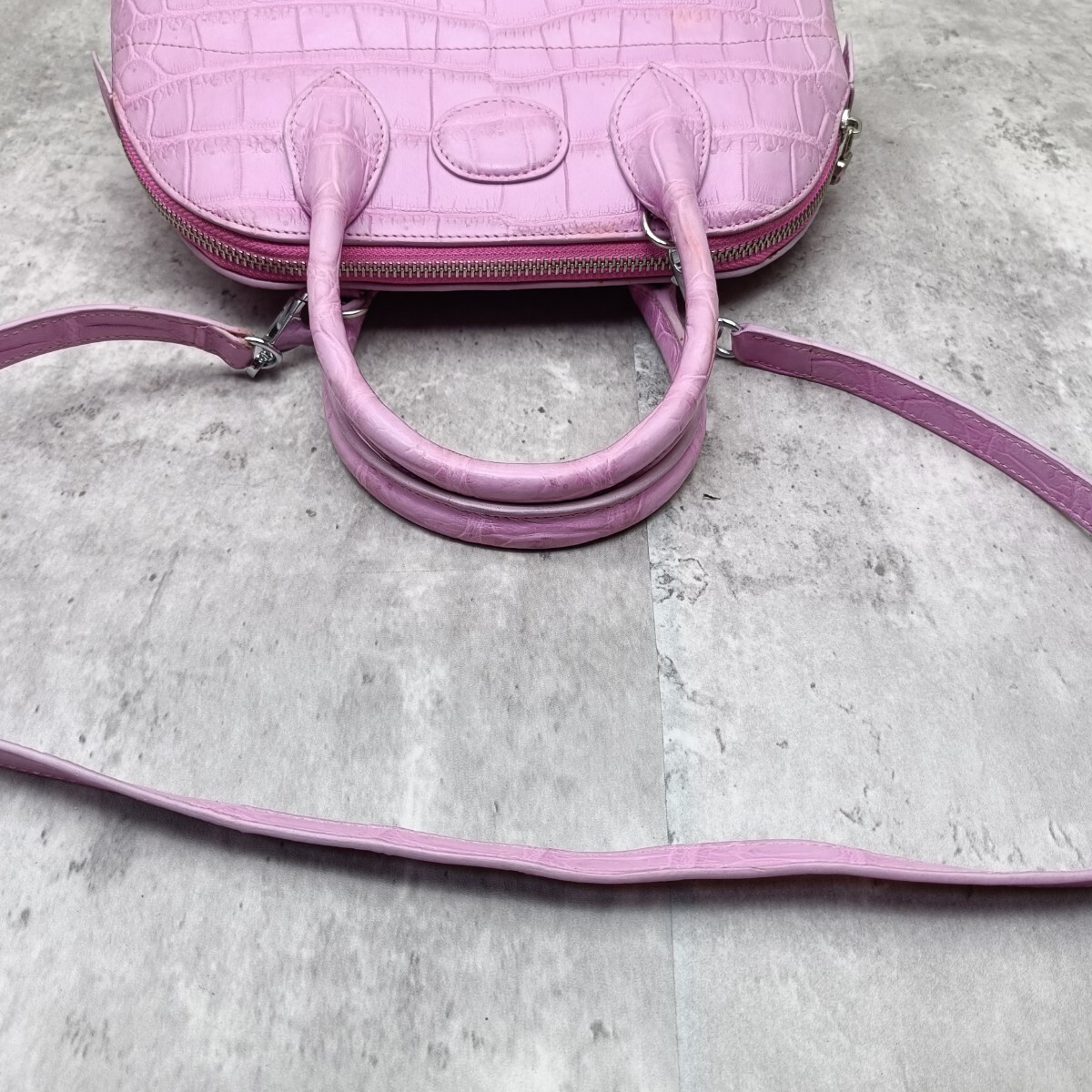 金属のスレ、若干のスレ等使用感はありますが丈夫な作りのパステルカラークロコダイルバッグ。