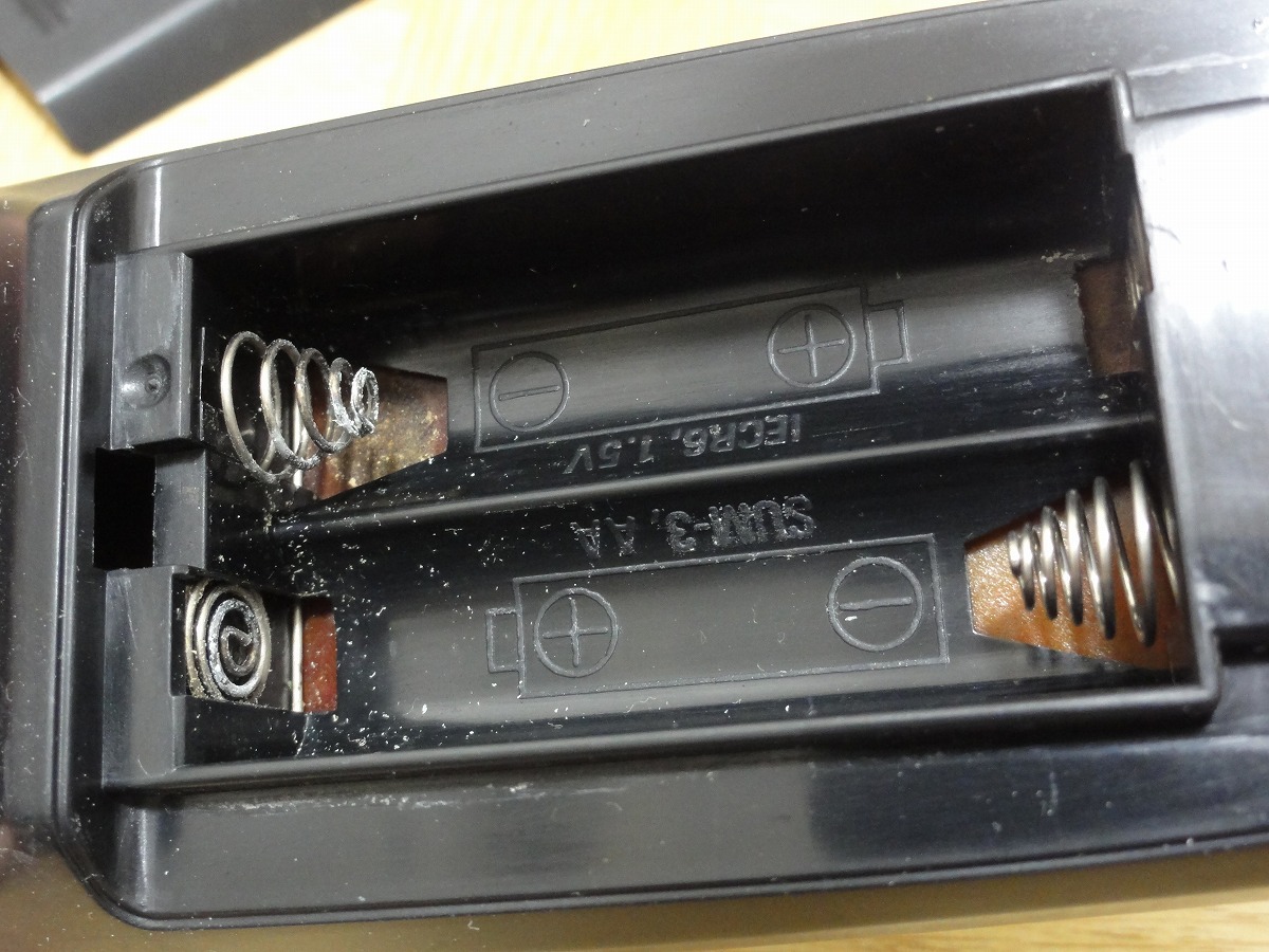 外観は擦り傷程度で酷使された様子はありません。電池室に端子のサビはありませんが液漏れによる汚れがあります。