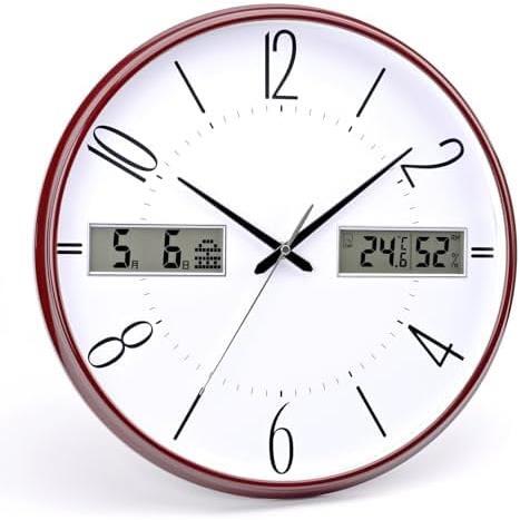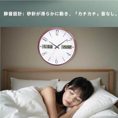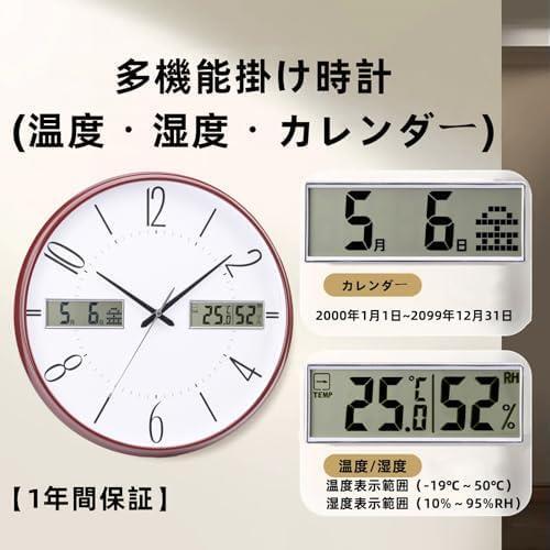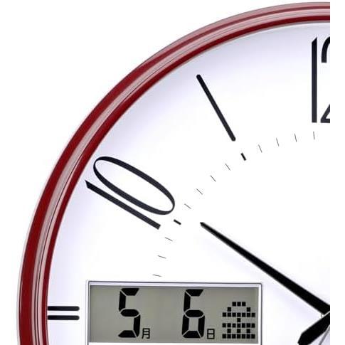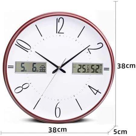 サイズ: 非電波:38cm_深紅の枠 掛け時計 直径38cm 静音設計 連続秒針 日付・曜日表示 温度/湿度 表示 深紅の枠