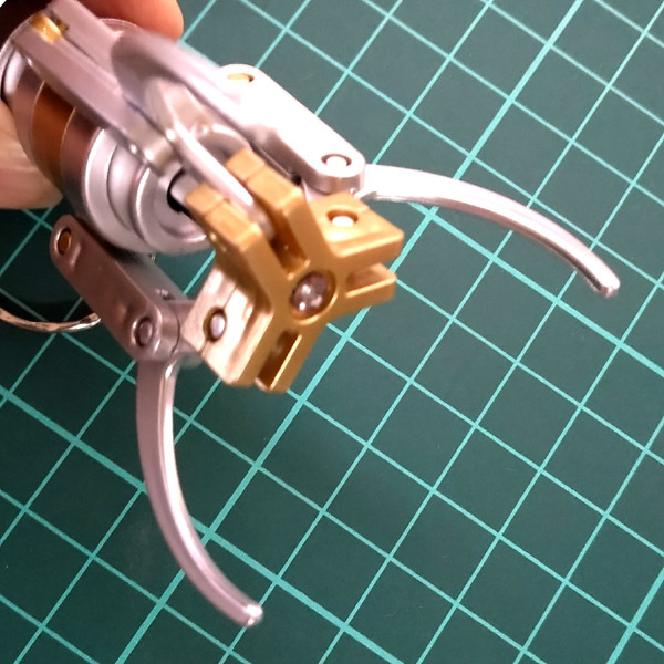 ★ 上部のフックを押し下げるとアームが開き、指を離すとバネの力で閉じる仕組みです。 ちょっとしたギミックがおもしろく、飾っても楽しめるアイテムです。