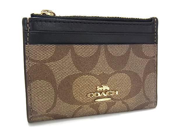 ■美品■ COACH コーチ シグネチャー PVC×レザー カードケース カード入れ パスケース 定期入れ ブラウン系×ブラック系 DI0676