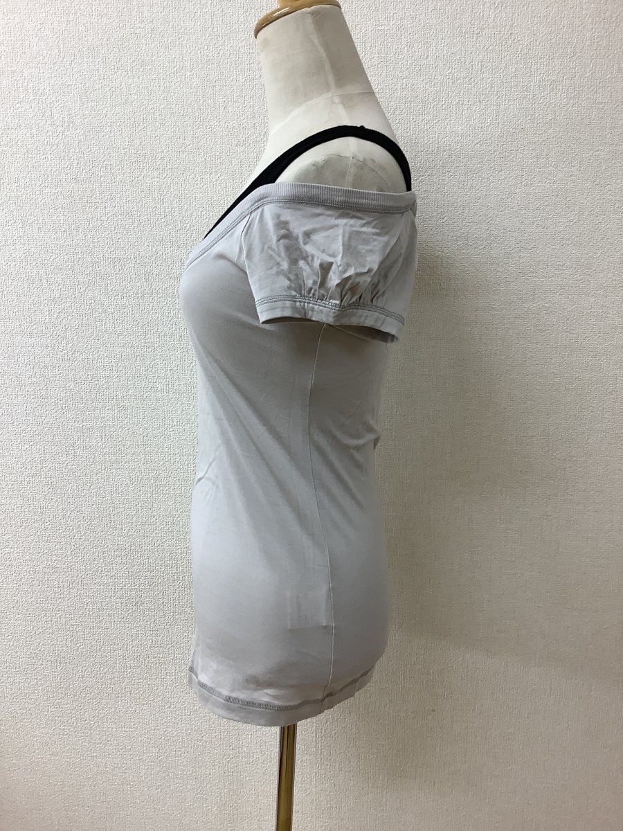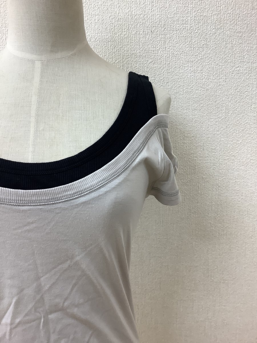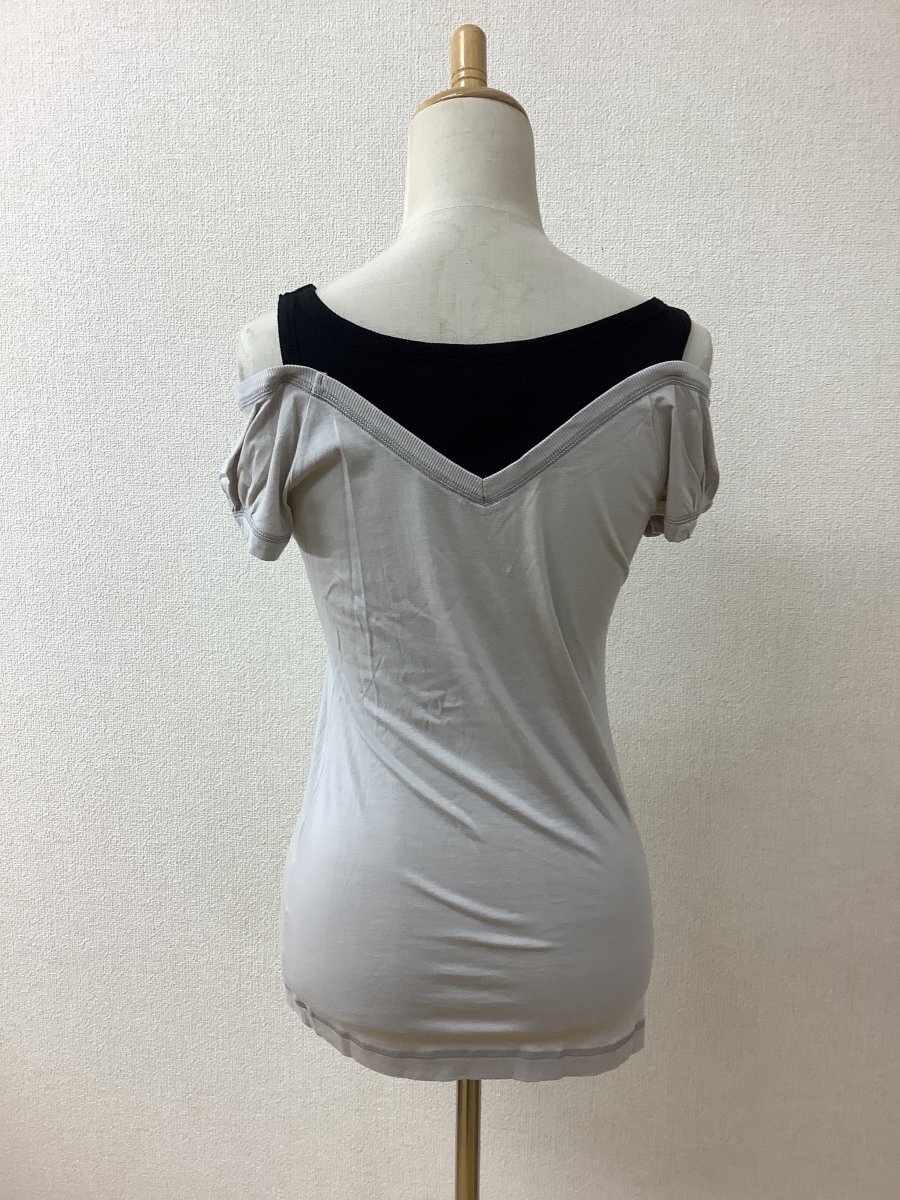 管理番号:10^138537 アンタイトル (UNTITLED) 重ね着風カットソー グレージュ 黒のタンクトップチラ見せ 表示サイズ:2 実寸(参考)
