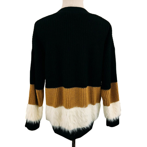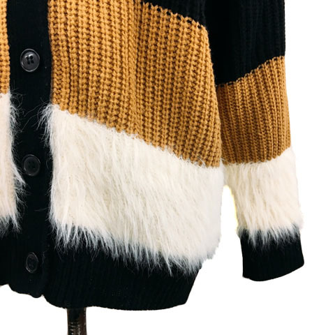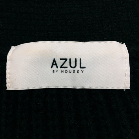 アズールバイマウジー AZUL by moussy カーディガン ニット Vネック リブ シャギー 長袖 S 黒 白 ブラック ホワイト レディース