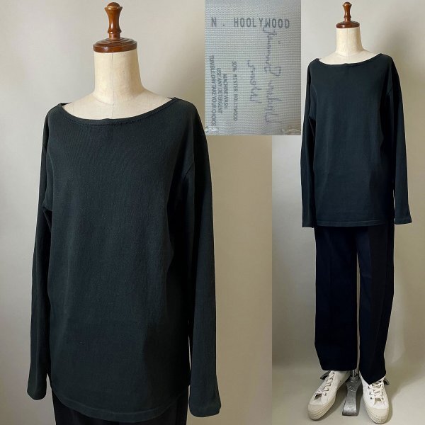 ★【国内正規品 日本製 名作 比較的良好な状態】n.hoolywood ミスターハリウッド 13RCH コットン100% やや厚手 無地 バスク シャツ 42 黒