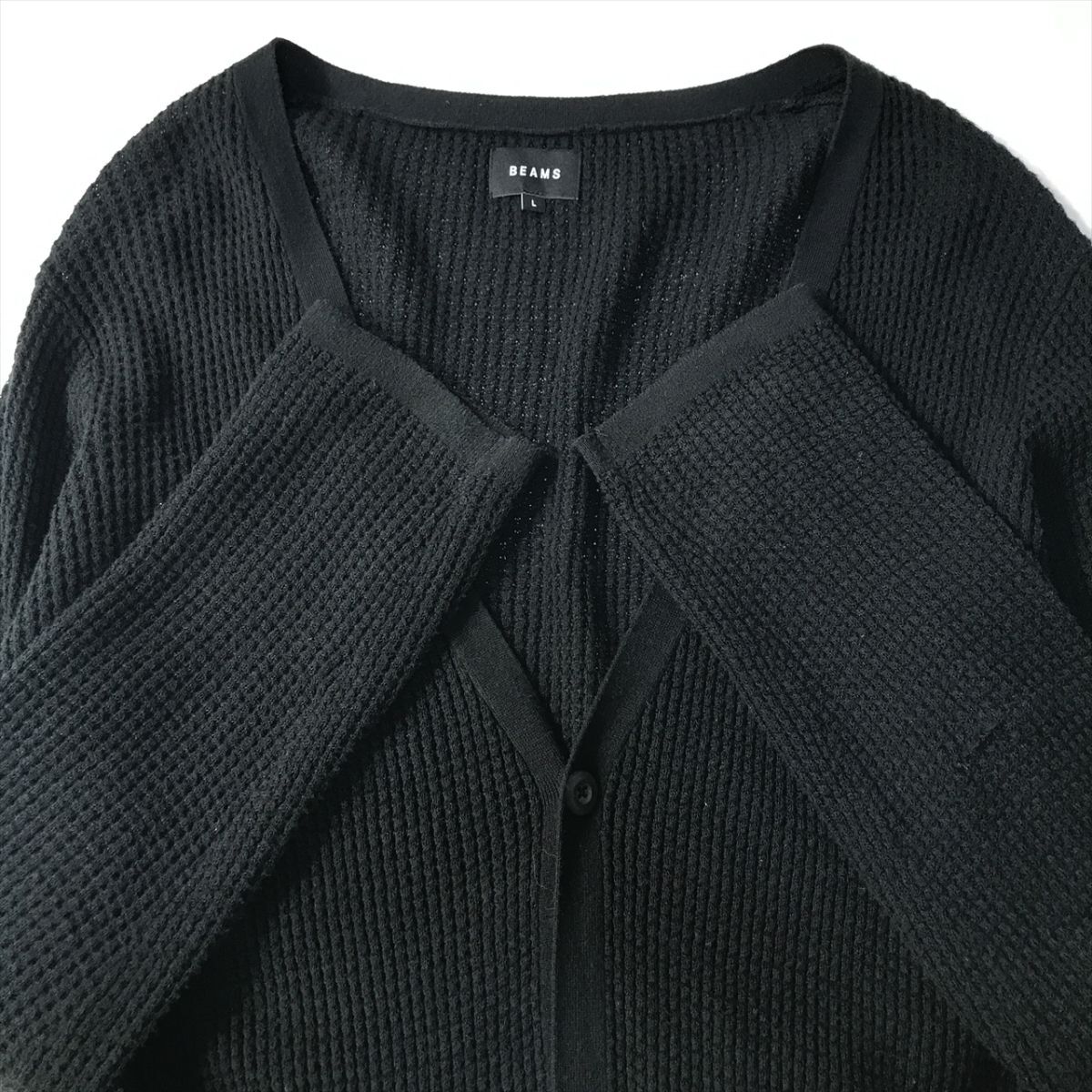 《オススメ◎》BEAMS ビームス★サーマル生地*ロングカーディガン*ブラック*サイズL(MA9253)◆S80