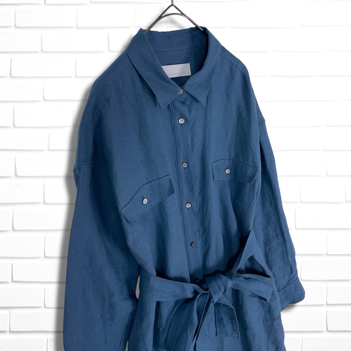 ◆良品◆ GALLARDAGALANTE ガリャルダガランテ リネン 麻 100% ゆったり ベルト 長袖 ロング マキシ ワンピース レディース F 2165I□