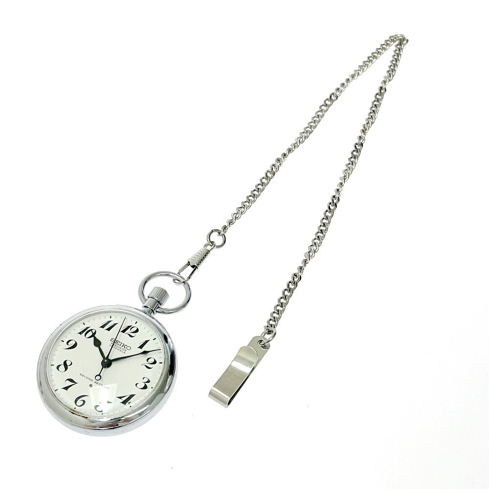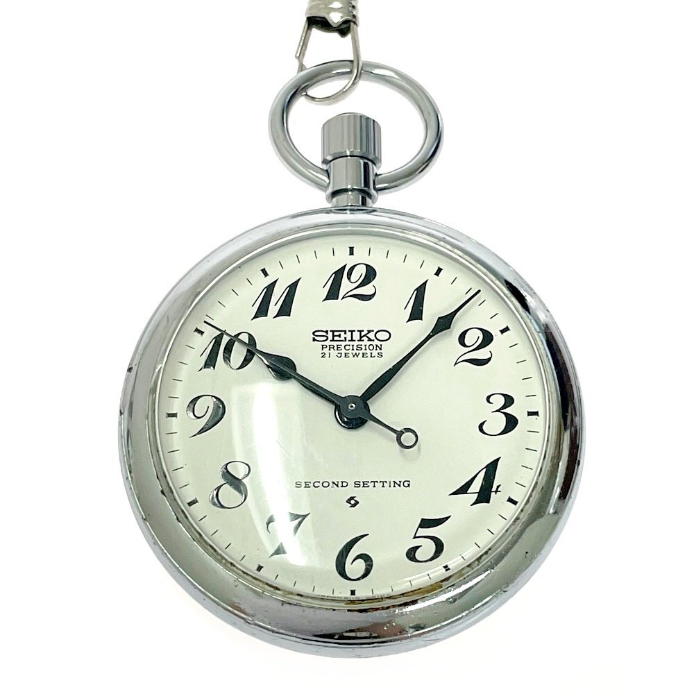 【1円スタート】SEIKO セイコー PRECISION プレシジョン 21石 SS ホワイト文字盤 手巻き 懐中時計 485145