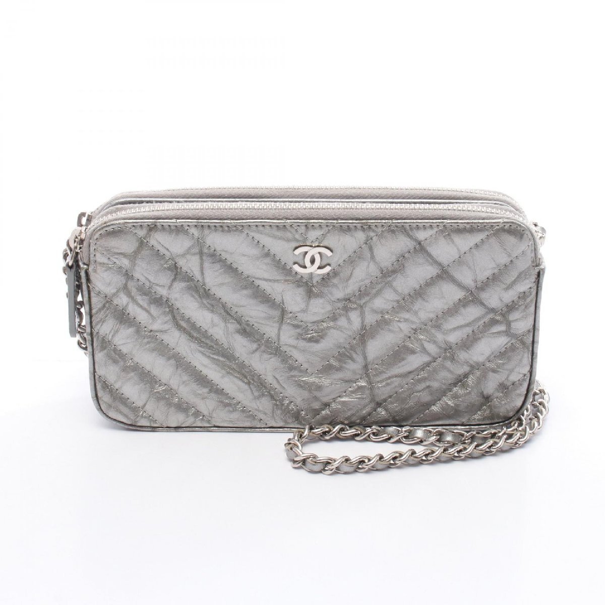 シャネル シェブロン Vステッチ ブランドオフ CHANEL レザー ショルダーバッグ パテントレザー 中古 レディース