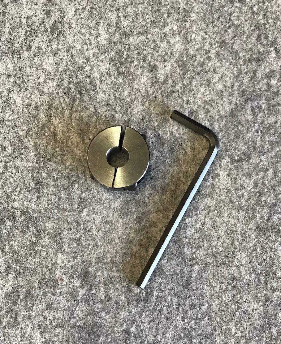 お手持ちのシャフト抜き器でウッド用スリーブ(カチャカチャ)を抜く時、通常のヘッド押し板ではスリーブが変形したり傷が着く場合がありますがこのリングを使用すればほぼきれいに抜けます。使い方はリングのボルトを外し2分割にしてシャフトに取り付け後ボルトを取付ます。ボルトを締めてもリングはシャフト上でスライドしますのでシャフトに影響はありません。使い方はリングのボルトを外しリングを2分割しシャフトに取付けボルトを取付ます。スリーブをヒートガン等で加熱しシャフト抜き器でヘッドを抜く要領でスリーブを抜いて下さい。御質問は質問欄からお願いします。開始価格は本体4000円送料600円税金460円合計5060円です。税込み送料込みとなります。ノークレームノーリターンでよろしくお願いいたします。