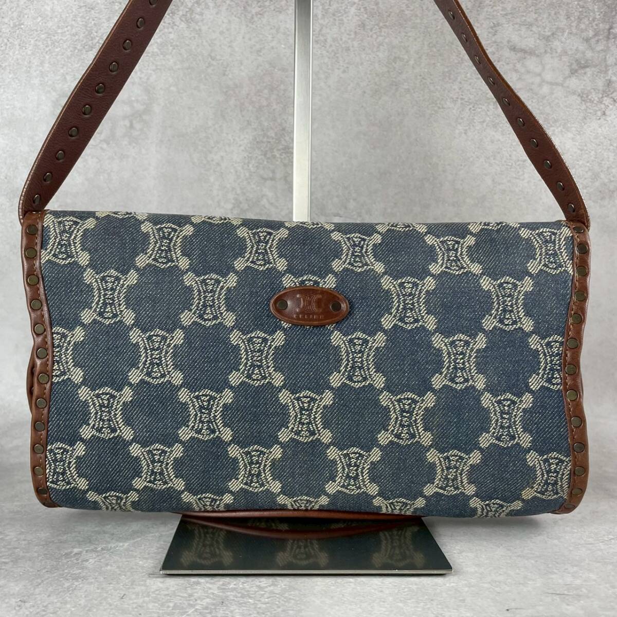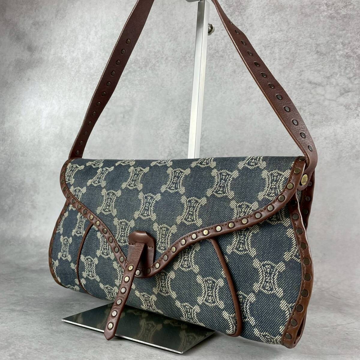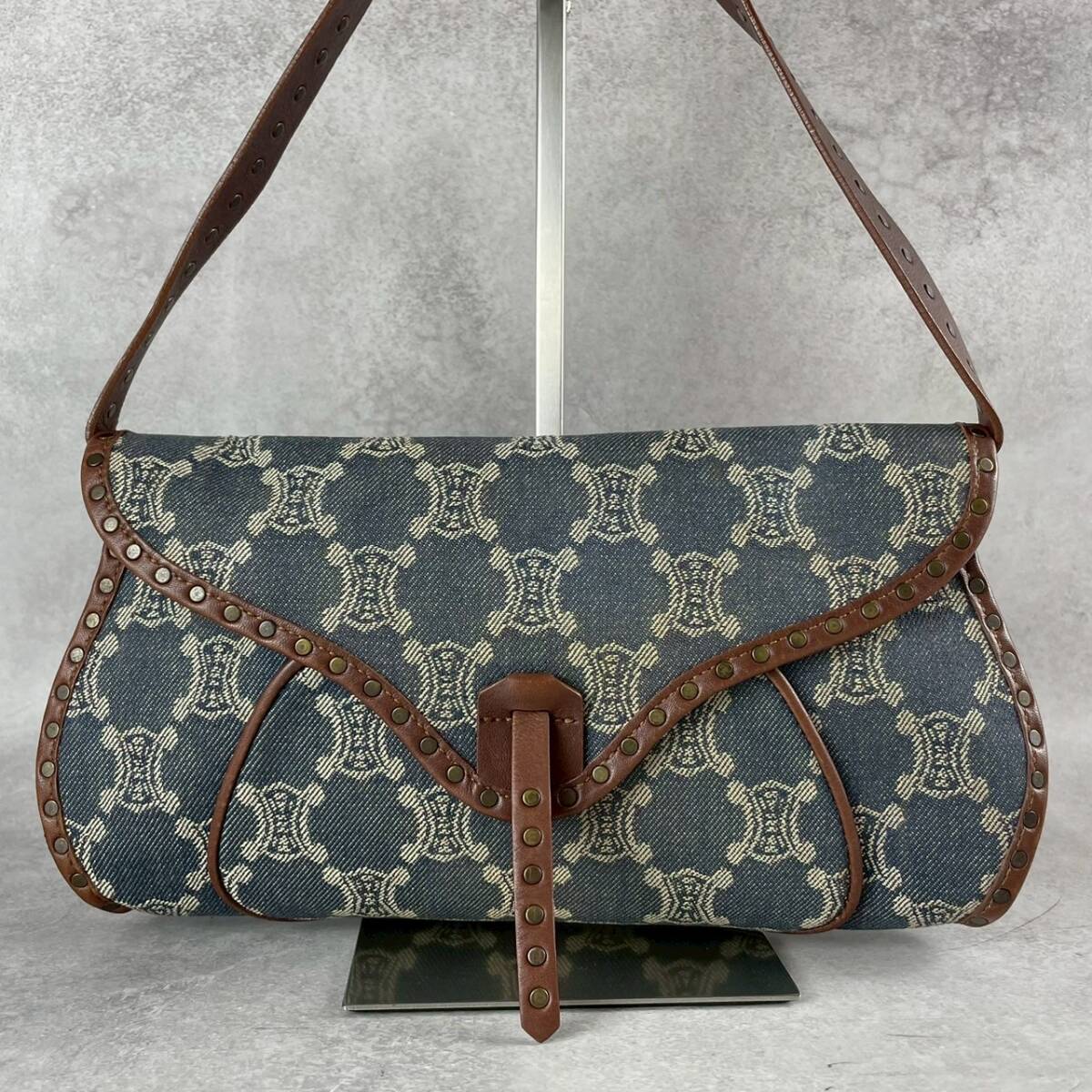 【入手困難/美品】CELINE セリーヌ パリマカダム デニム アクセサリーポーチ ワンショルダーバッグ スタッズ 肩掛け ホーボー レザー 革 鞄