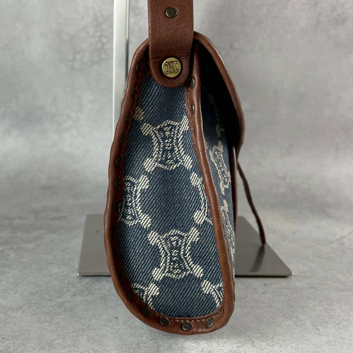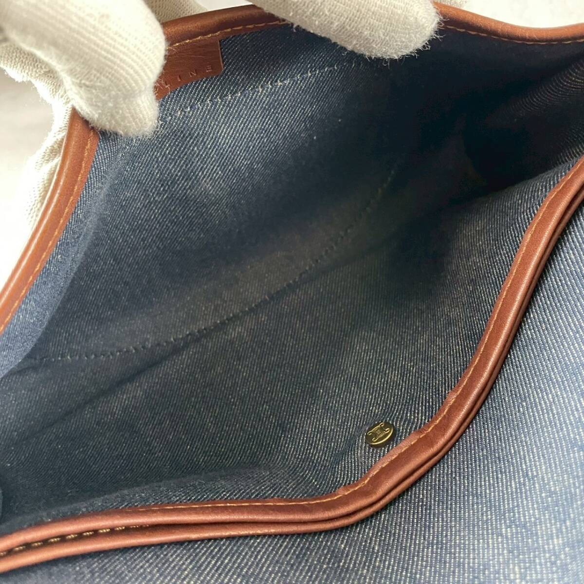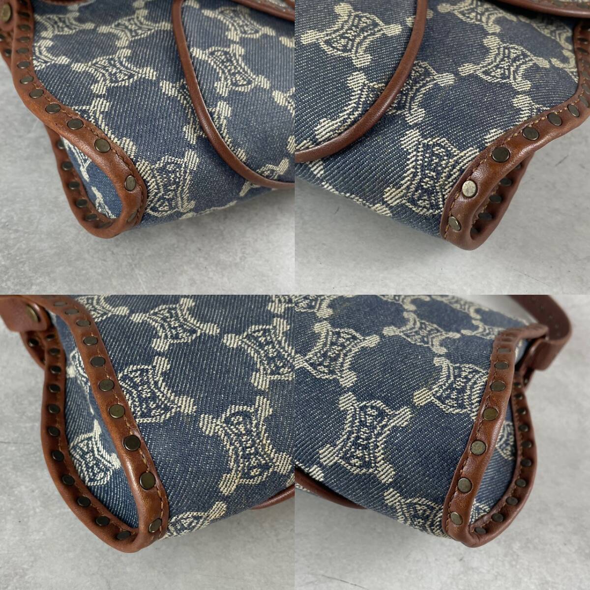 【入手困難/美品】CELINE セリーヌ パリマカダム デニム アクセサリーポーチ ワンショルダーバッグ スタッズ 肩掛け ホーボー レザー 革 鞄
