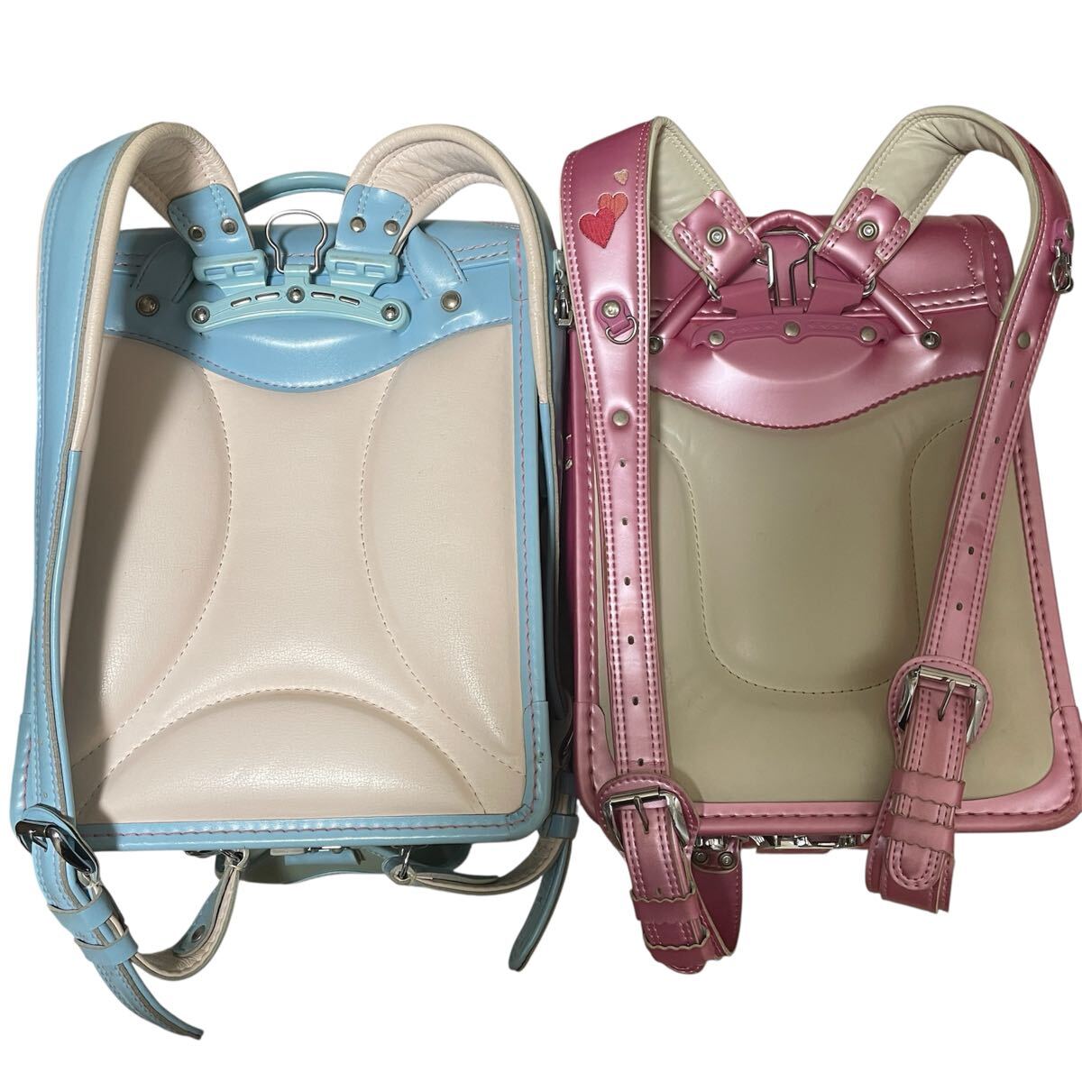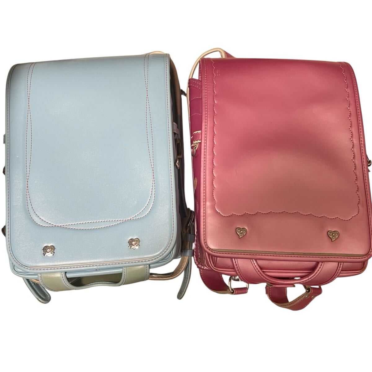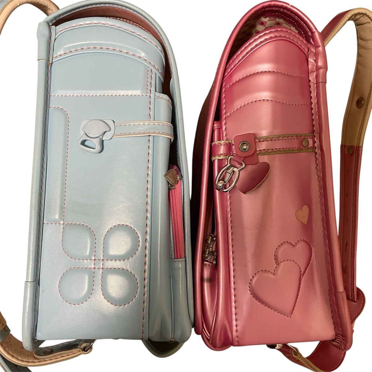 ランドセル 小学生鞄 バッグ バック 通学 レディース リュック ピンク アクアブルー ハート クローバー 合皮 中古 2個 セット 即決あり
