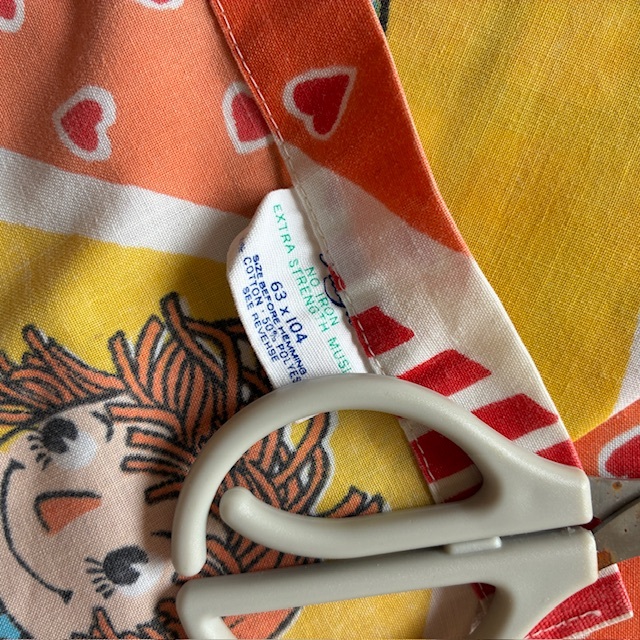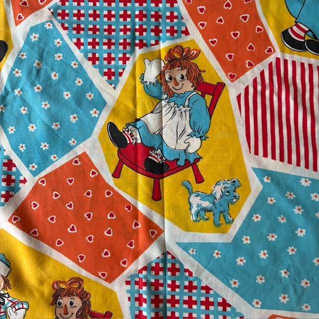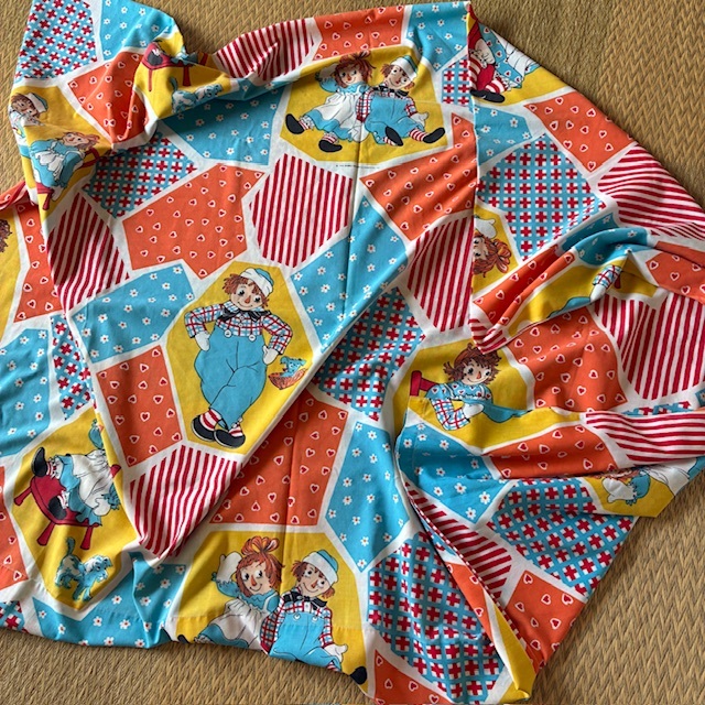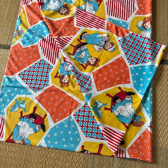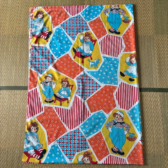 1970年代頃のラガディ アン&アンディのフラット生地になります。サイズが大きいため4つ折り(1/4サイズ)で撮影してます。サイズは横幅約164cm、縦約240cmになります。