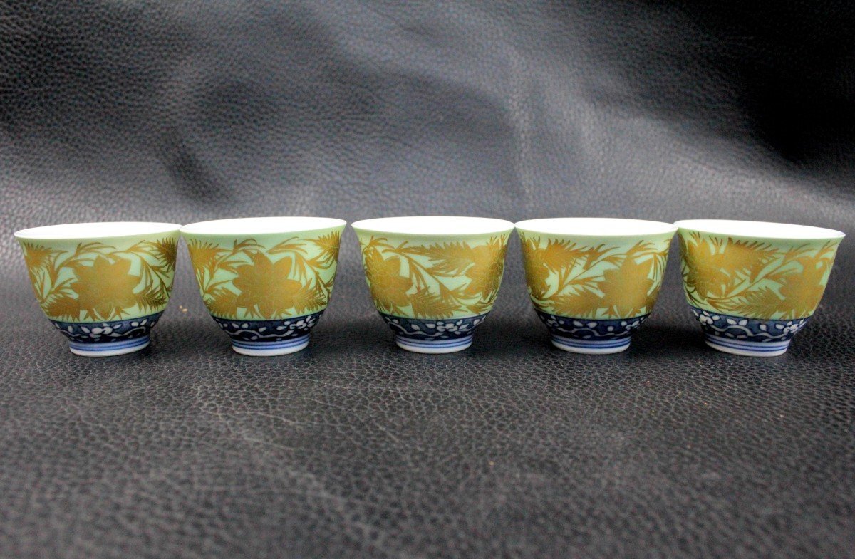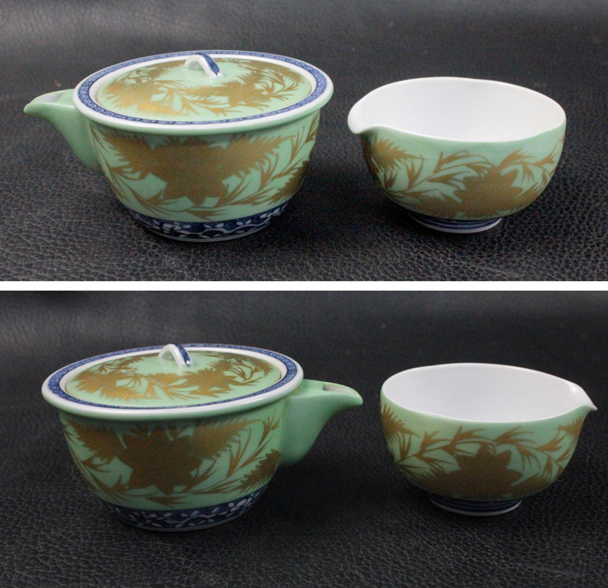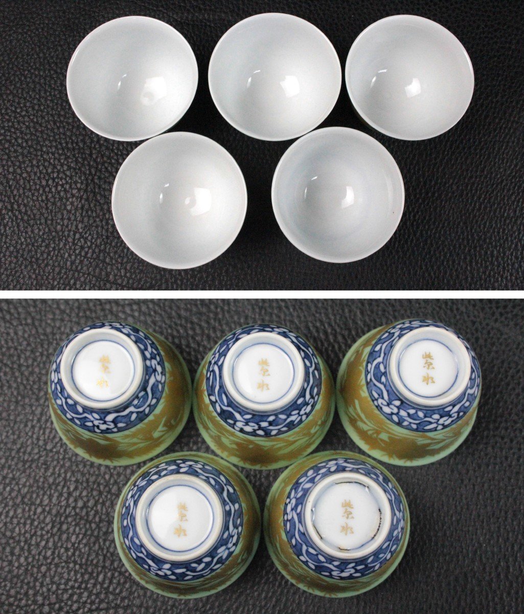 | ▼商品名 | 平安 紫水 青巻 煎茶器揃 金唐草 茶道 茶道具 茶器 伝統工芸 レトロ 骨董 アンティーク 共箱付き |
