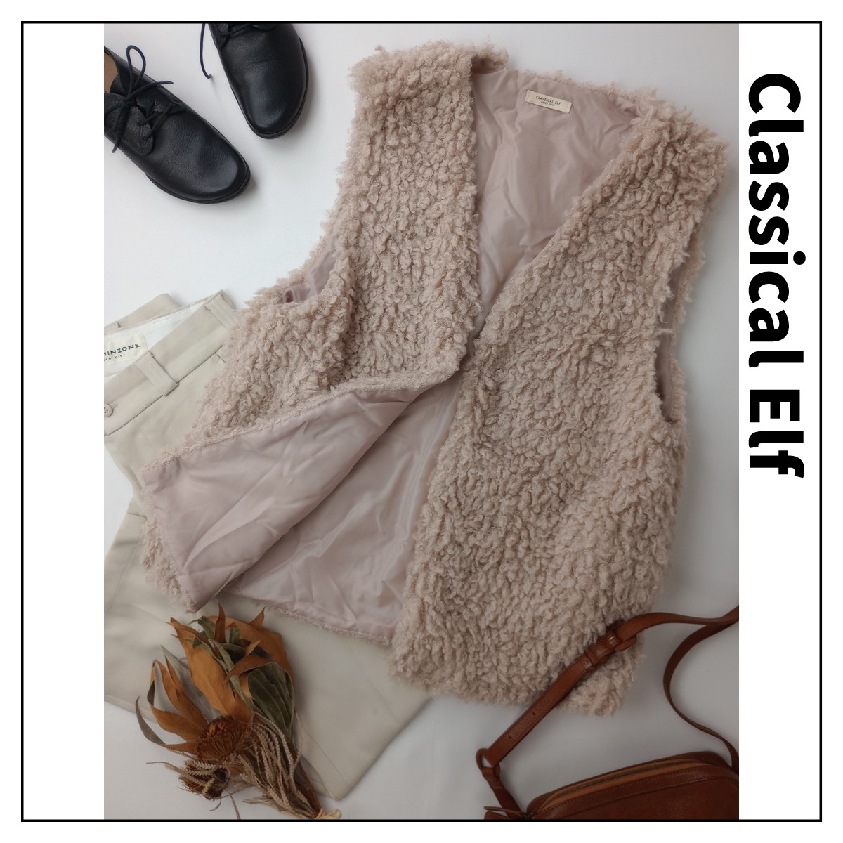 Classical Elf クラシカルエルフ「大人可愛いをつくる。」ボリュームプードル フェイクファー ベスト ジレ M ピンクベージュ(CM+0034)