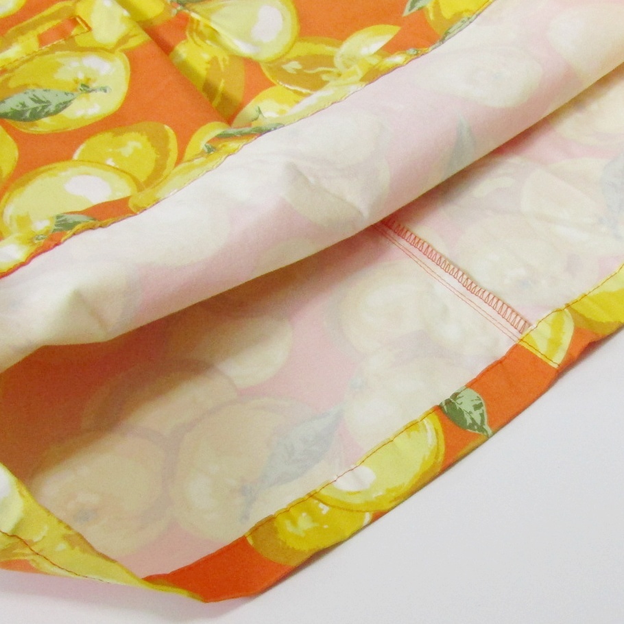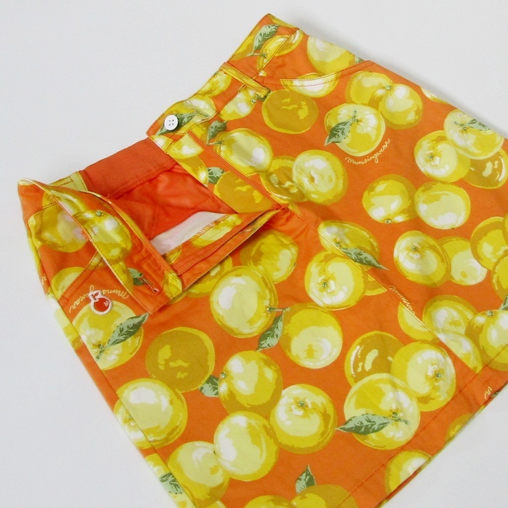 爽やかなオレンジフルーツ柄が目を引き、コーディネートのアクセントとして華やかさをプラスします。
