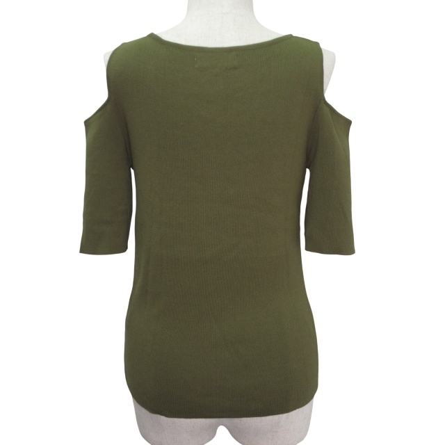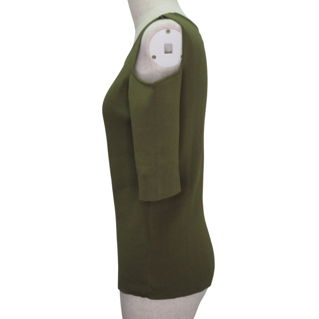 アンデミュウ Andemiu 半袖 オープンショルダー カットソー トップス F XSサイズ相当 カーキ a404 0915 レディース