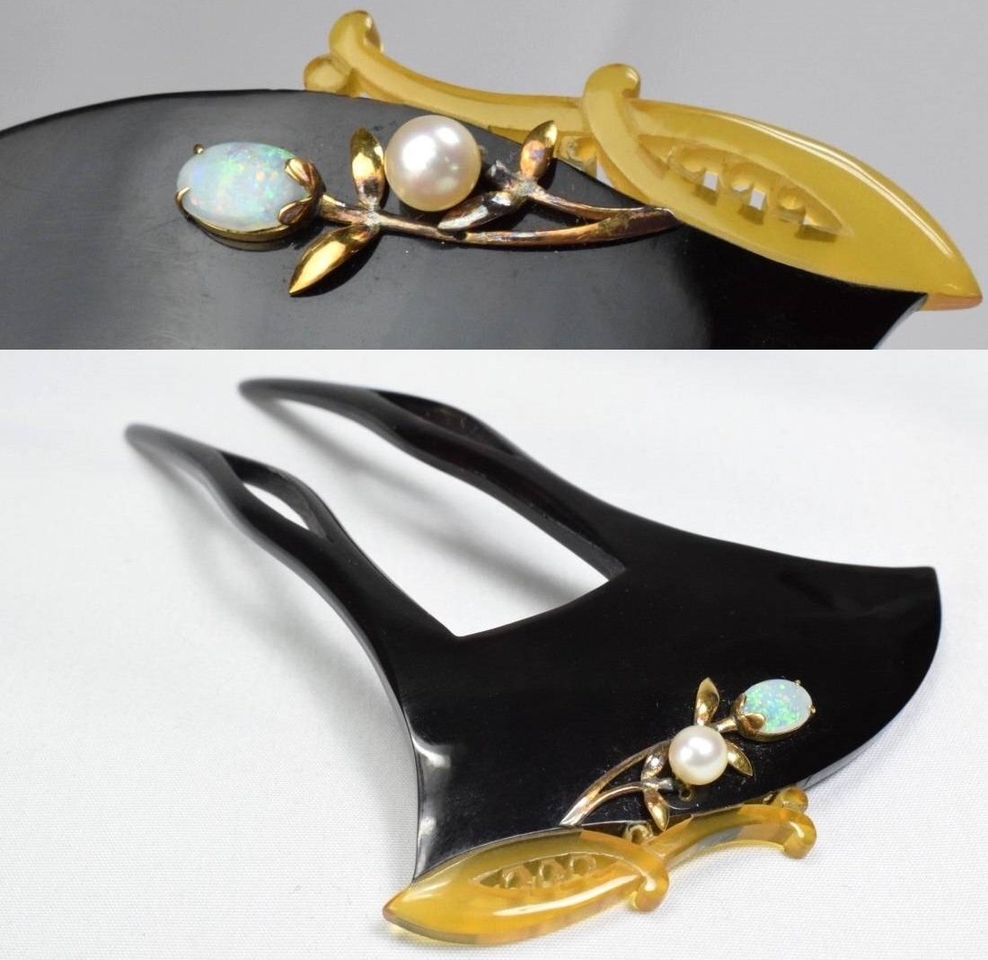 長さ 約9.8cm 横 約6.4cm 本鼈甲製(べっ甲)白甲 黒甲 真珠 金工 簪 かんざし 花嫁装飾 和装小物 髪飾り 割れ、欠けなく状態総じて良好。 詳しくは画像で御確認くださいませ。 (経年での汚れ、スレをご了承くださいませ) |