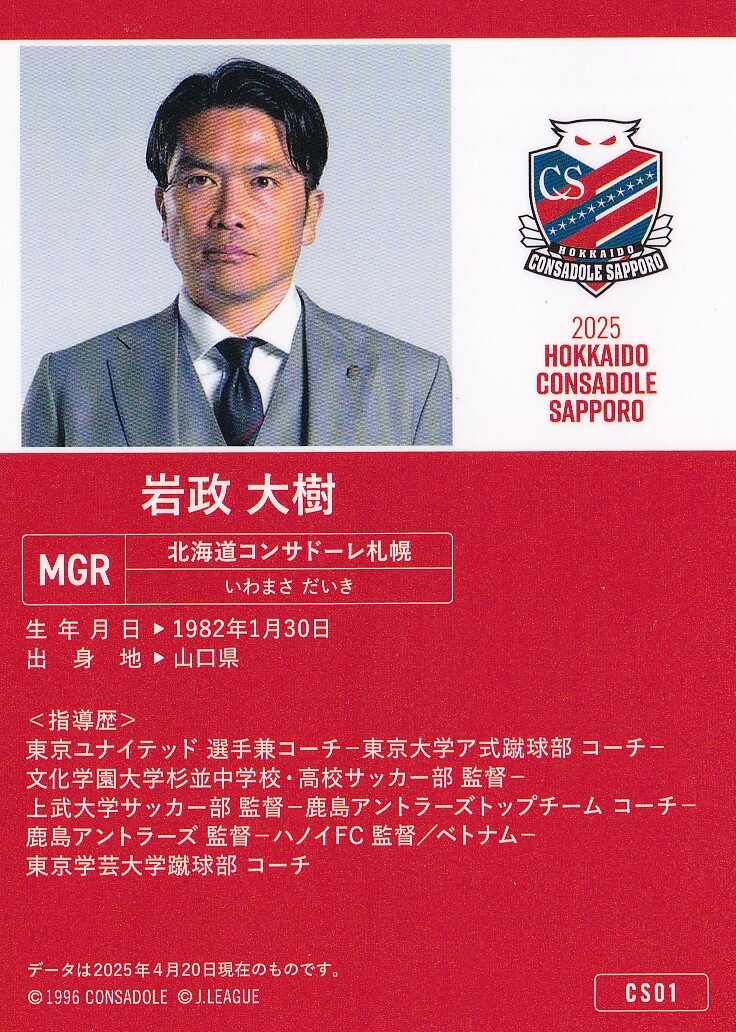 コンサドーレ札幌 2025 オフィシャル CS01 岩政大樹