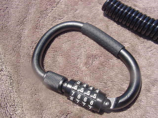 カラビナの形状が特徴の軽量ダイヤルロックです。
