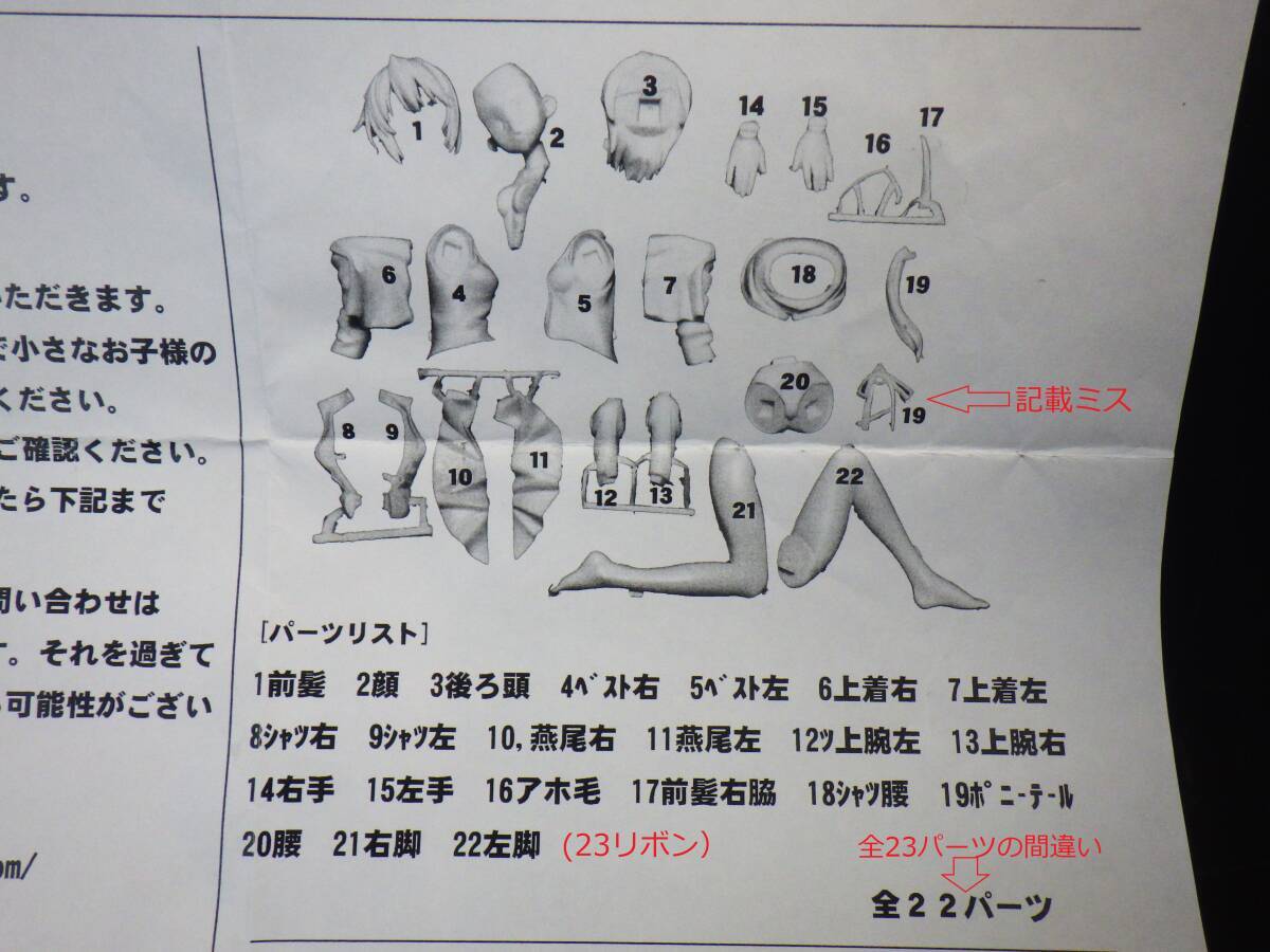 (説明書に記載ミスがあり19番が重複し全23パーツです)