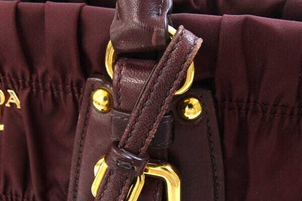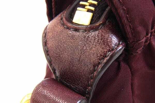 状態 | 外側:レザーに小キズ、スレ、所々スレによる色褪せあり。ナイロン地薄汚れあり。 内側:レザーに小キズ、スレあり。 金具:小キズ、クスミあり。 |