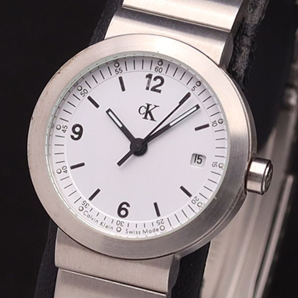 稼働 美品 カルバンクライン QZ K2131 デイト ラウンド 白文字盤 レディース腕時計 YSD