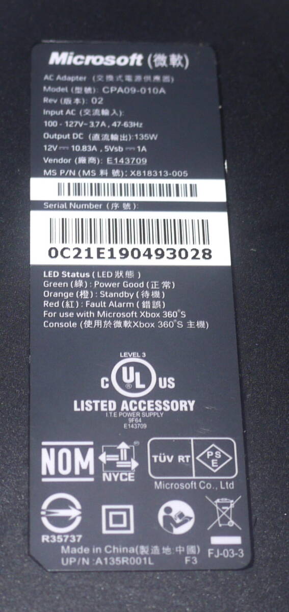 Microsoft XBOX360用 ACアダプター CPA09-010Aの出品です