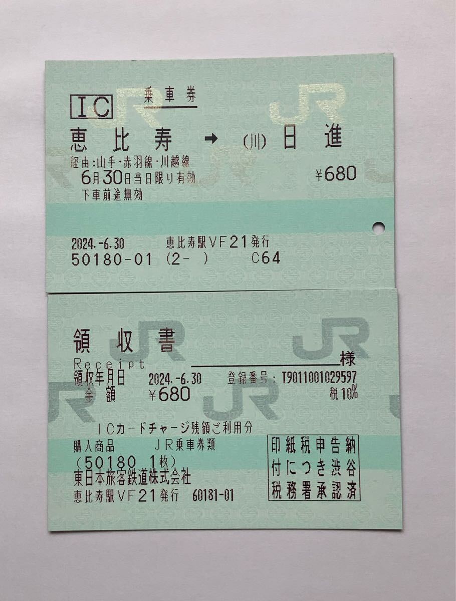 【商品】JR東日本 乗車券 ( 恵比寿→日進 ) 恵比寿駅発行 50180-01
