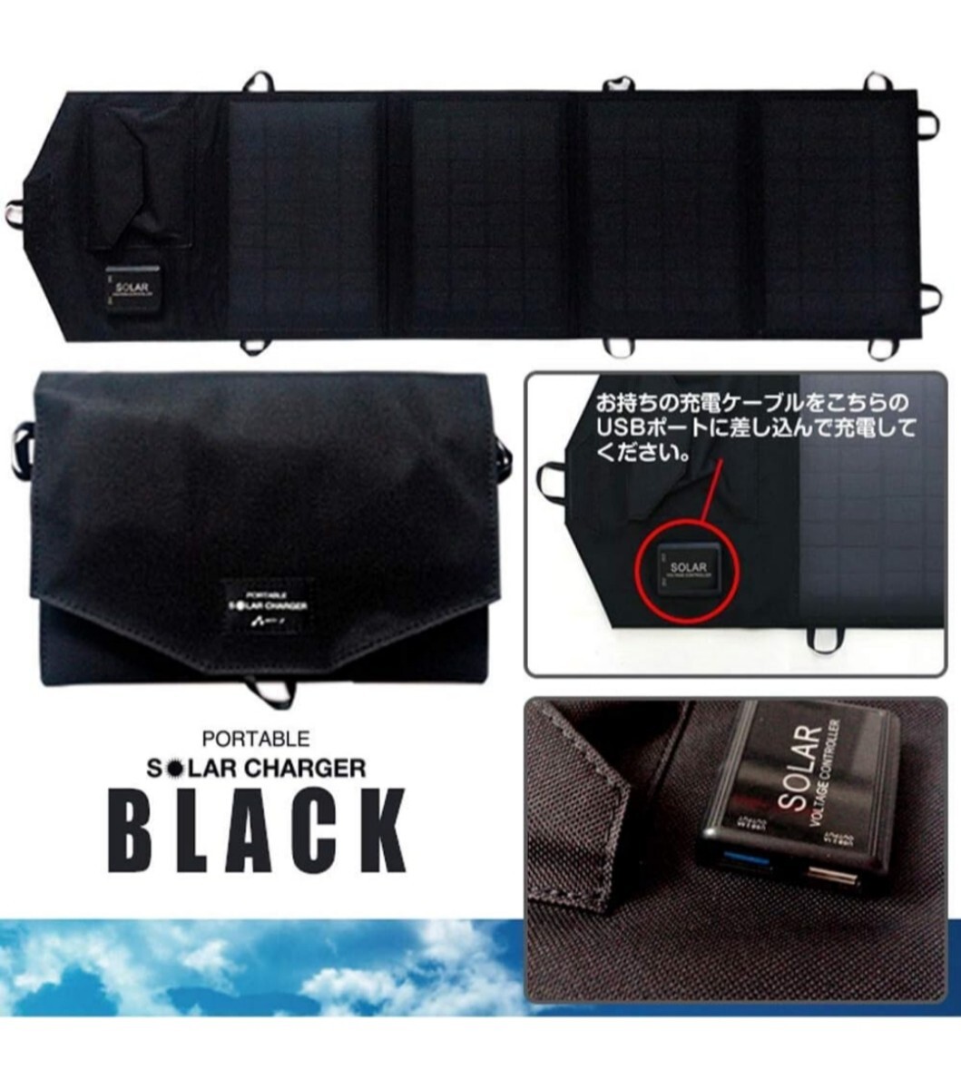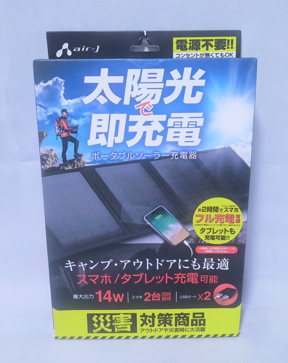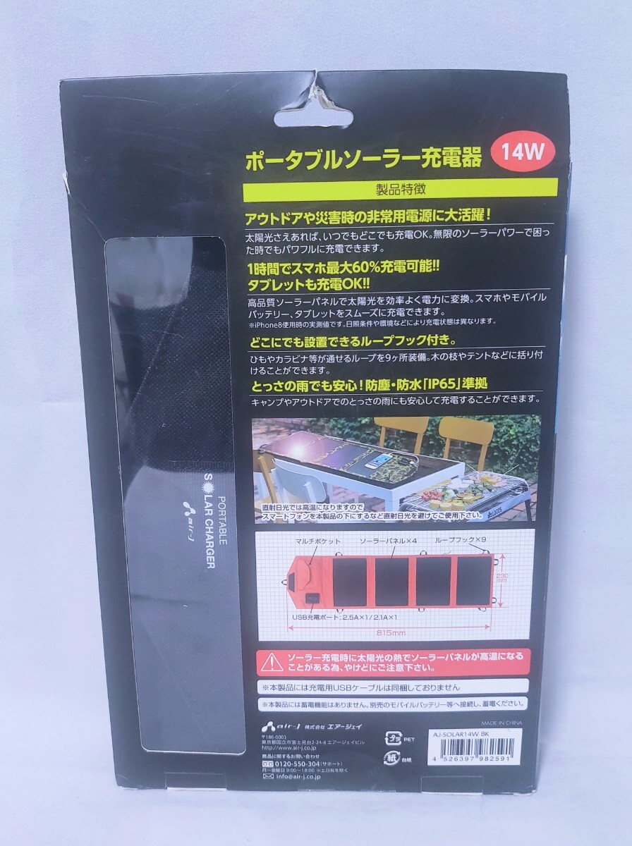 【新品 未使用品】Air J/エアージェイ ポータブルソーラー充電器 AJ-SOLAR14W BK 送料無料
