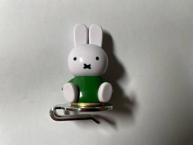 プラスチックのマスコットに磁石に反応するようワッシャーを貼り付けた手作りマーカーです。