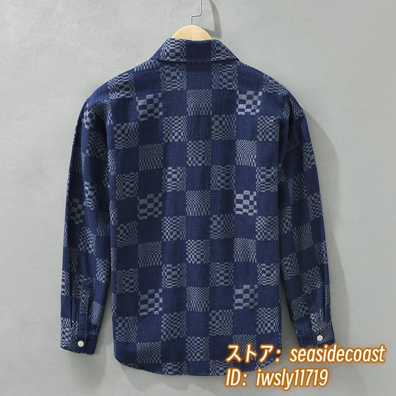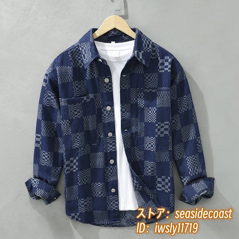 正規品◆デニムシャツ 秋新品 メンズ 長袖シャツ チェック柄シャツ ヴィンテージ 超希少 極美品 デニムジャケット カジュアル 心地良し 3XL