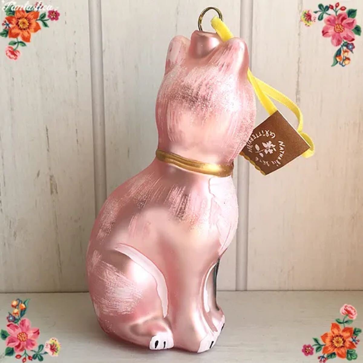 こちらはペイル・ピンクに輝くフォルムも神々しい、スタッフォードシャーキャットのラグジュアリーなドール・オーナメント。