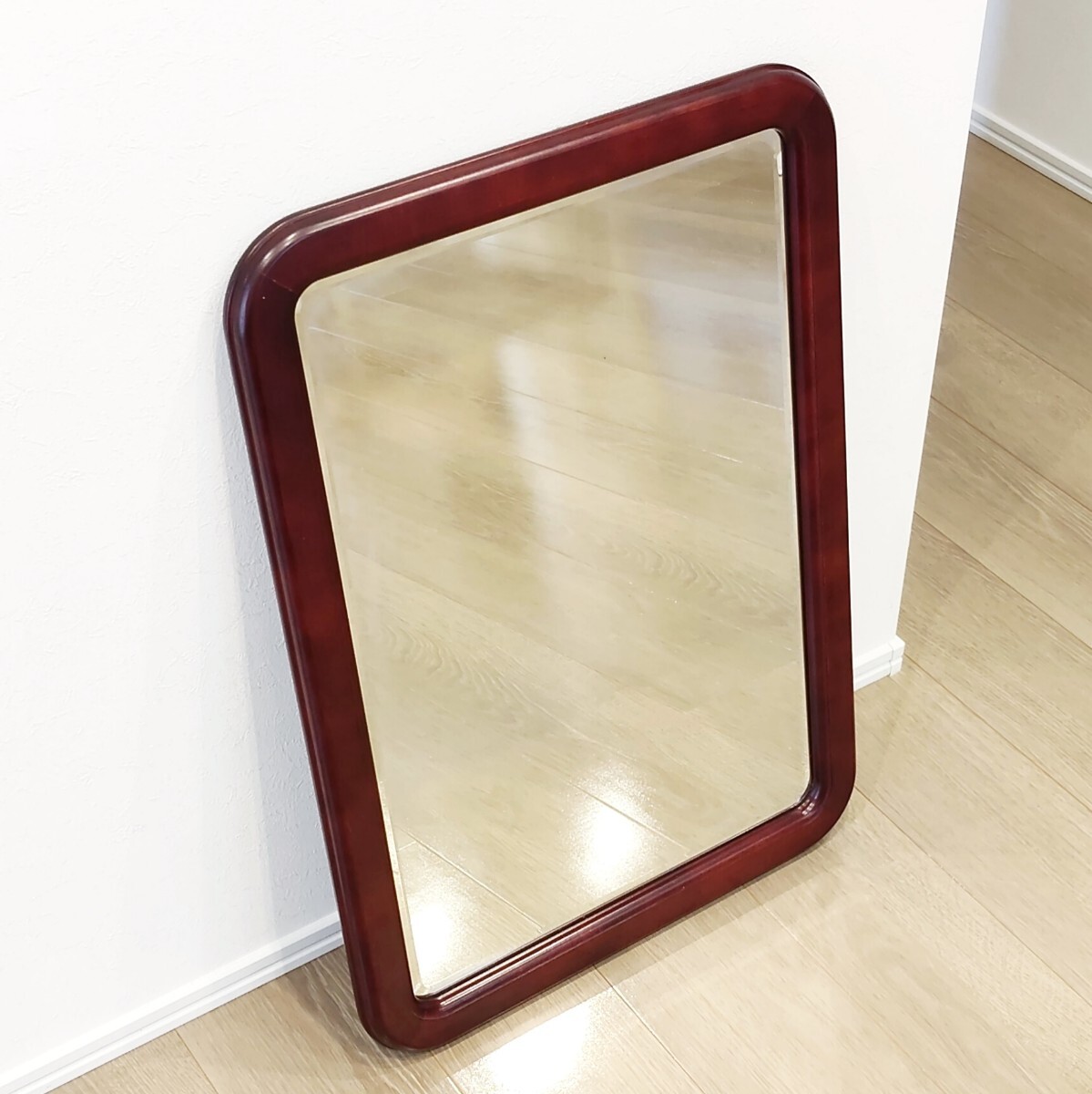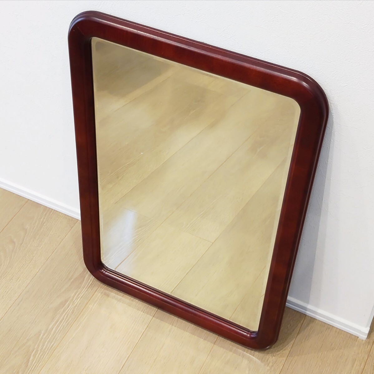 karimoku カリモク オールドカリモク 木枠 ウッド ウォールミラー 壁掛け 鏡 インテリア レトロ 中古品です。
