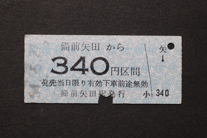 片上鉄道 乗車券 備前矢田から 340円区間