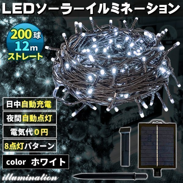 ソーラー イルミネーション 屋外 クリスマス ストレート 屋外用 イルミネーションライト 200球 ホワイト