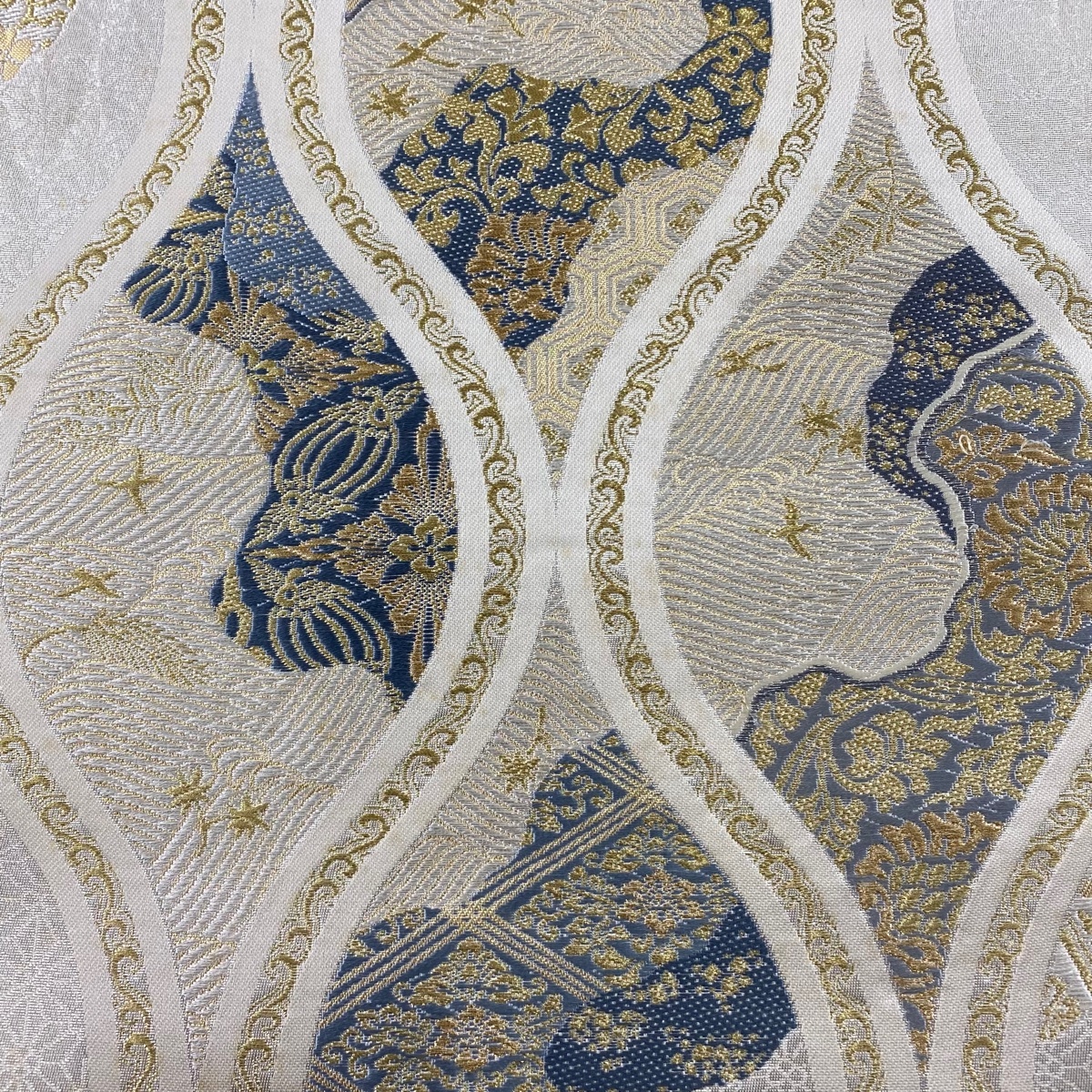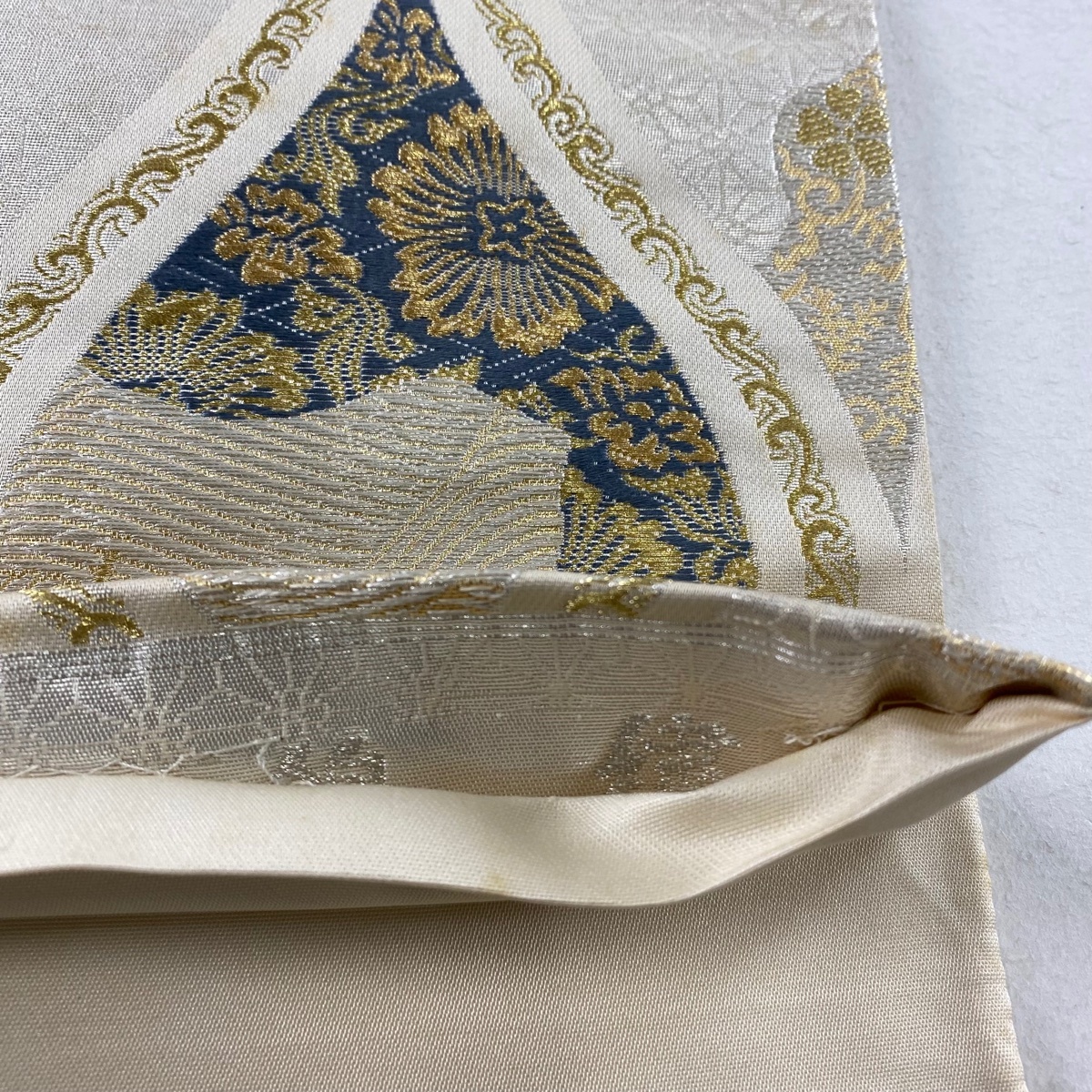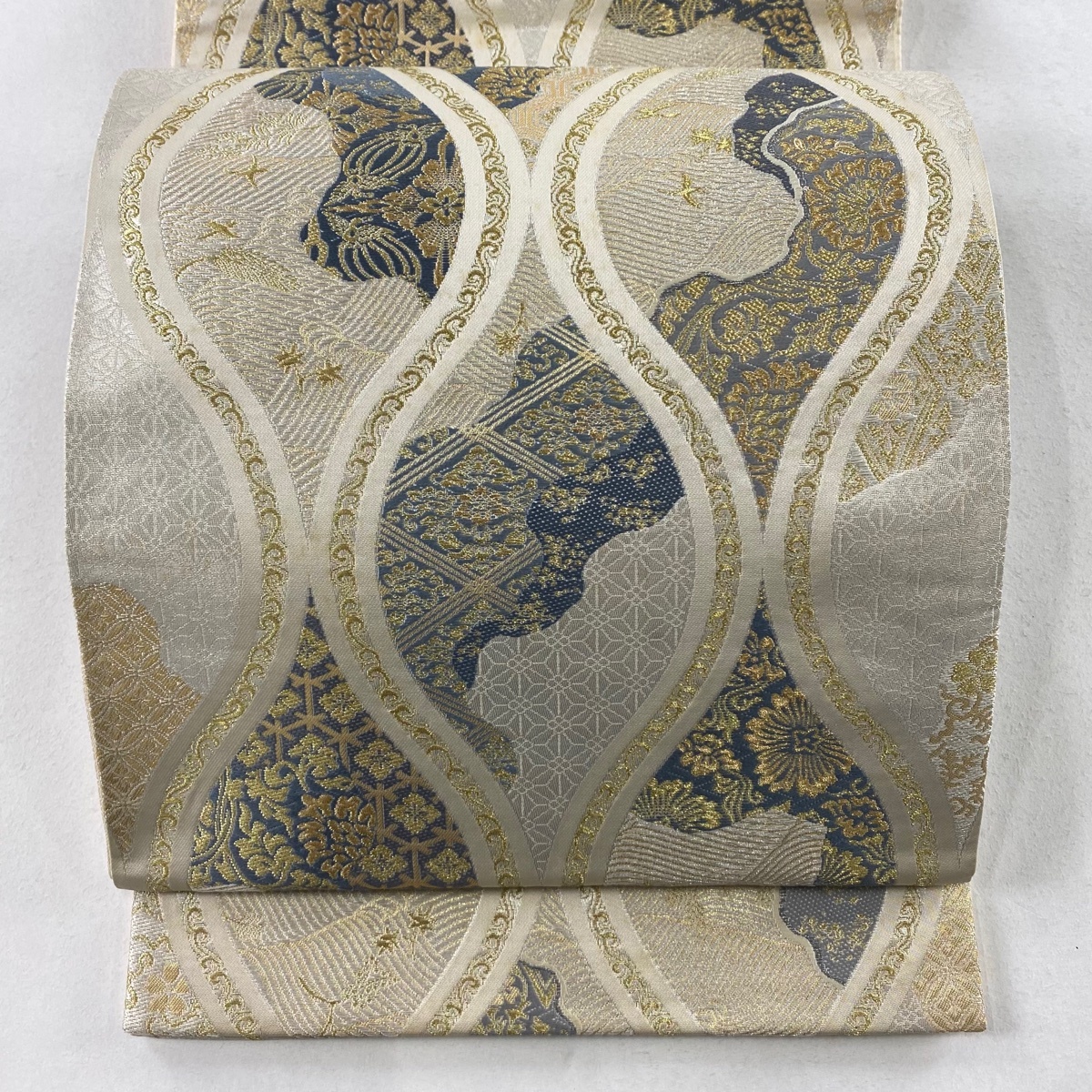 | 袋帯 秀品 立涌 花唐草 箔 金銀糸 クリーム 六通 正絹 【中古】 |