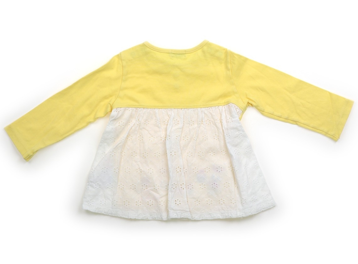 薄手のカットソー地・後ろ身頃はボーラーレース・裏地付きです。両肩スナップボタン付き・若干毛羽立ち・白っぽさがありますが裾広がりのデザインで可愛らしくまだお使いいただけそうです。