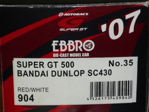 ☆1/43 EBBRO SUPER GT500 BANDAI DUNLOP SC430 No.35 赤/白です。箱に少し傷みがありますのでご了承の上入札ください。商品の状況は写真でご判断の上、ノークレーム・ノーリターンでお願いします。保証はできませんが、定形外郵便での発送も可能です。