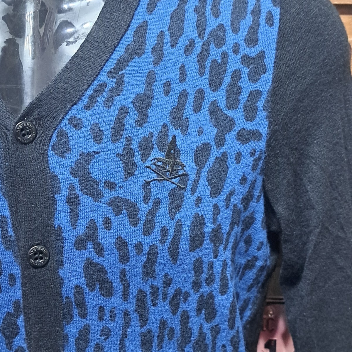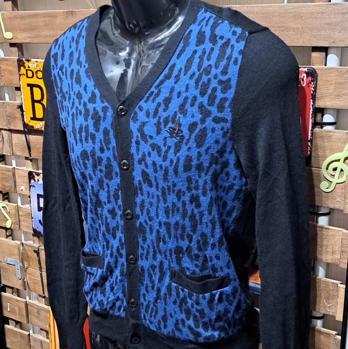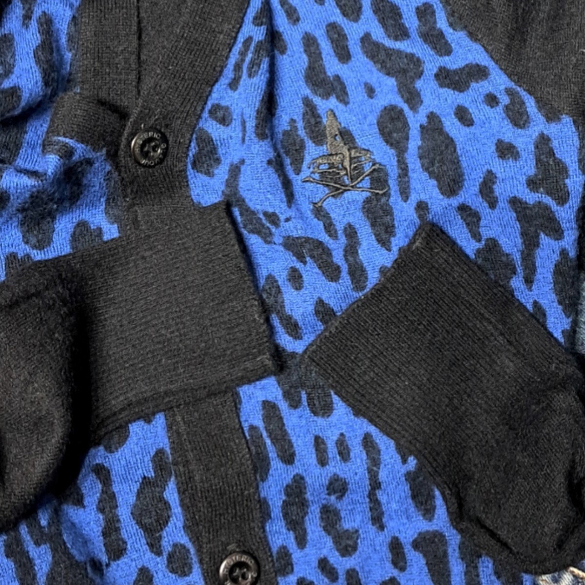 ダルメシアン柄の総柄がお洒落な薄手アンゴラニットカーディガン。