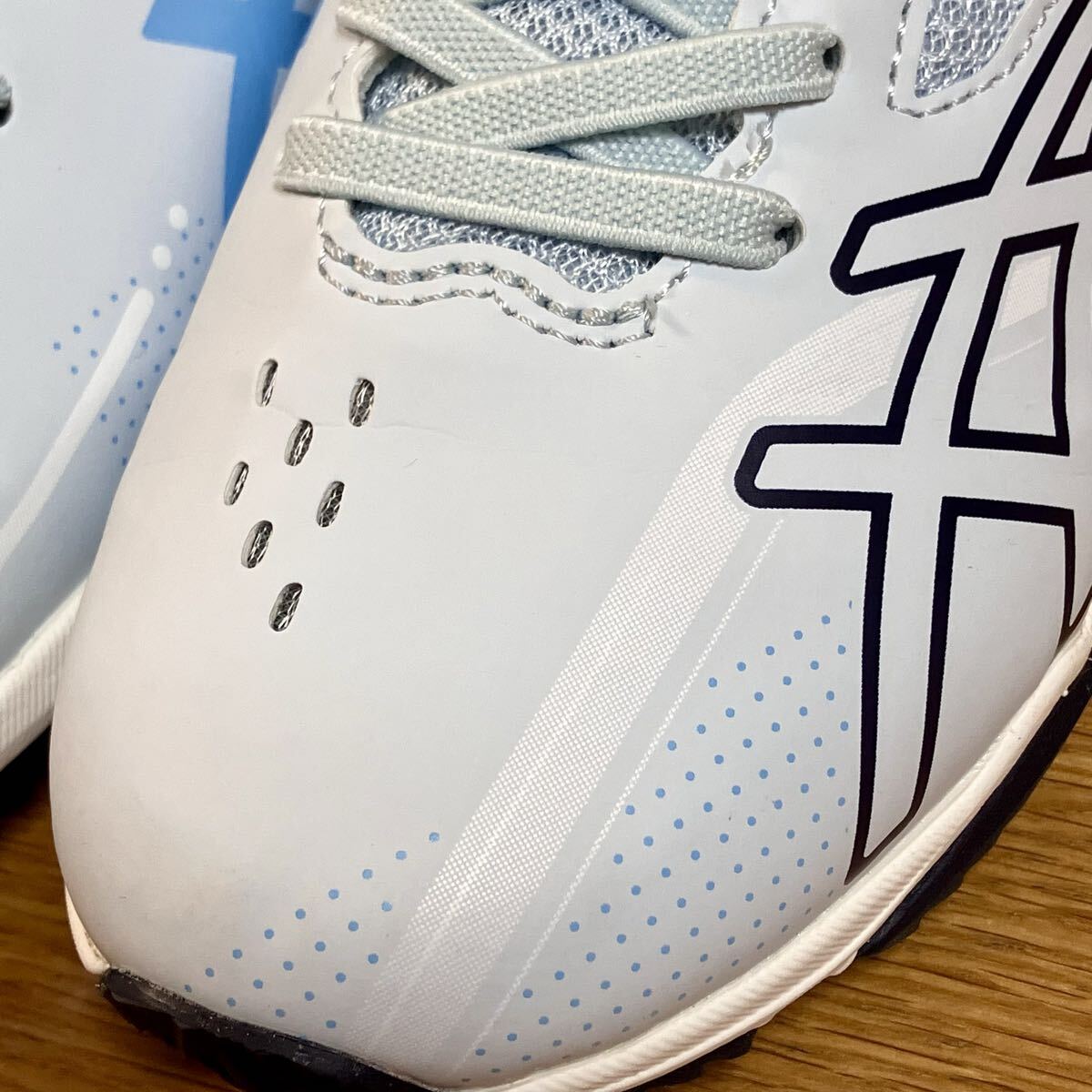 1回室内で履いたのみで、甲のあたりに少しシワができていますが、新品に近いです。