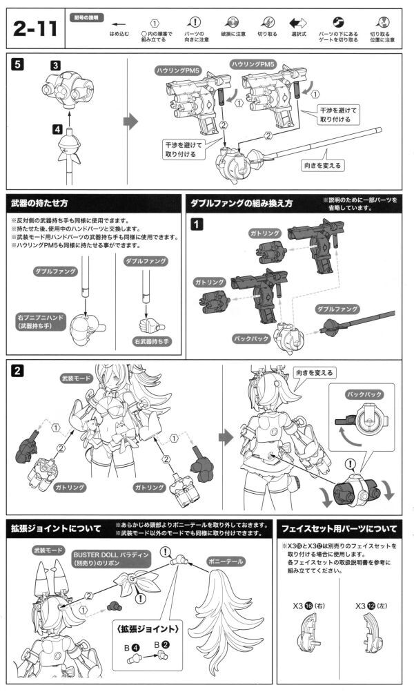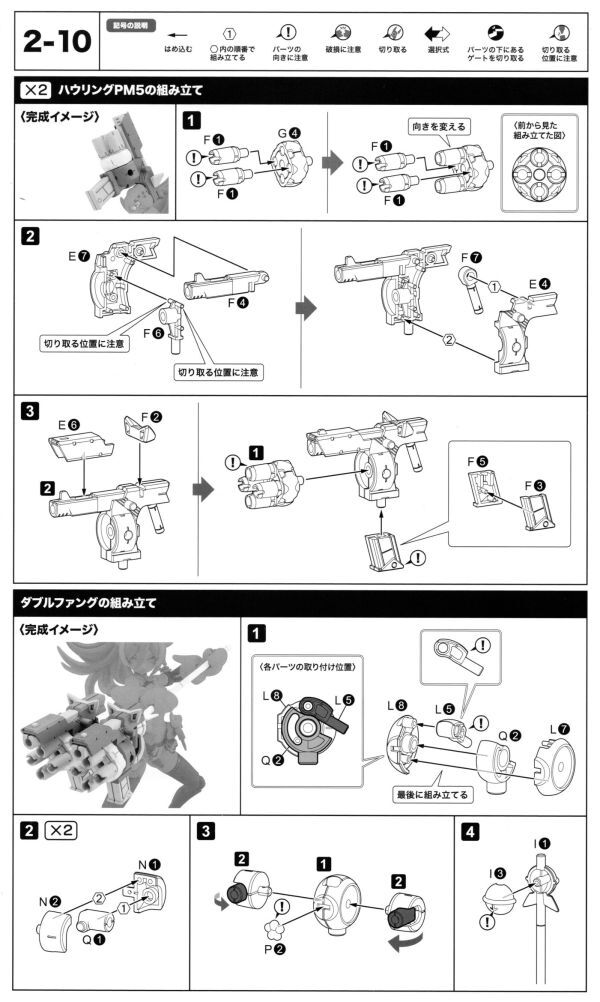 ・説明書の2-10ページ『ハウリングPM5の組み立て×2』『ダブルファングの組み立て』が組み立てることができるパーツのセットになります。