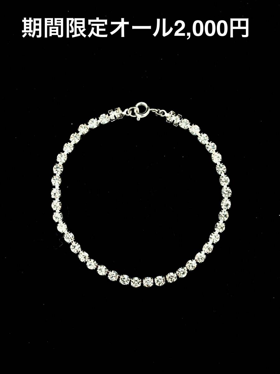 セール中 ブレスレットシングルチェーン、ラインストーン(大粒4㎜)、シルバー