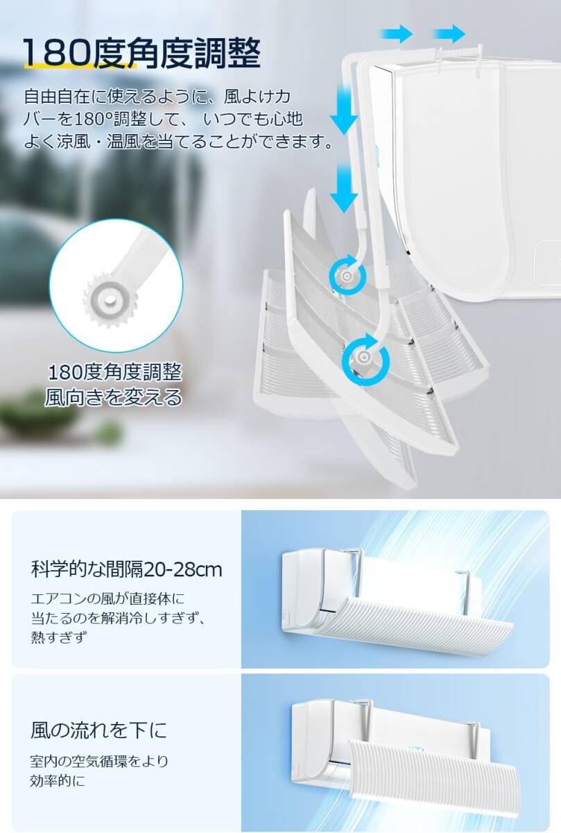 管理番号:1693*新品未使用のアウトレット品です。現物の写真をご確認ください。*擦り傷、ほつれ等がある商品もございますのでご了承の上ご購入をお願い致します。*買取品のためメーカー保証は受けられませんのでご了承ください。【商品説明】・画像6枚目が実際の内容全てです。・説明書付き・カラー:ホワイト【直撃風をしっかりガード】幅を60-90cmまで調整でき、アームの長さも伸縮可能で、エアコンの幅や風量に合わせてお好きな距離を設置できるエアコン風よけカバーです。体の冷やし過ぎ、ドライ目、ノド・お肌の乾燥などの原因となる不快な冷暖房の直撃風をブロックし、エアコンの風が直接当たるのをアームと風向き調節を行うことで、風向きを細かく設置でき、冷暖房による不快感を軽減します。【取り付け簡単 多機種エアコン対応】穴あけなどの工事不要、テープ不要、釘とかを使わずに壁に傷つけずに済むので、誰でも簡単に取り付けできます。ぶら下げ式で、取り付けると落下の心配もなくしっかり固定されます。※エアコン本体と壁の間は4センチ必要です。