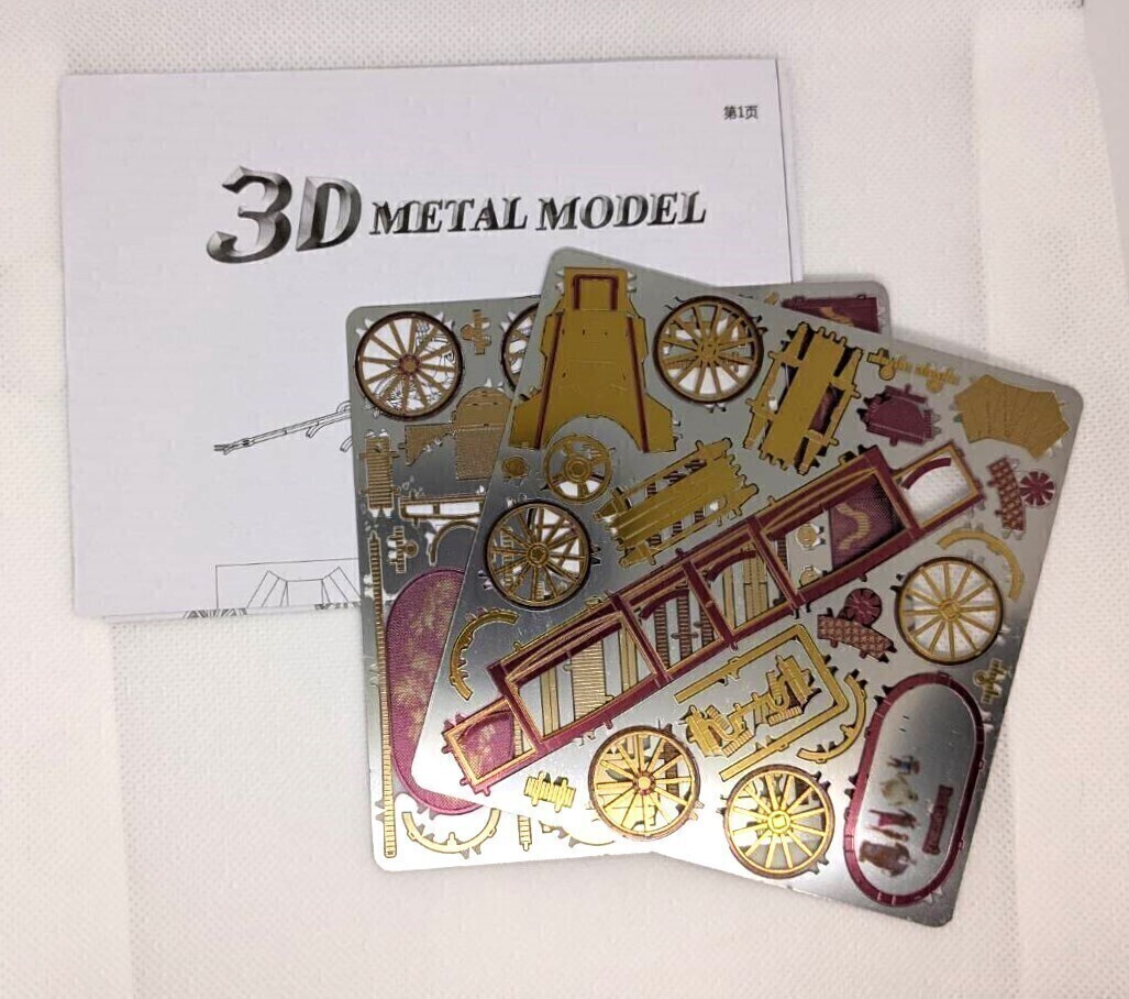 金属シートからパーツを切り出して組み立てることで、立体的な精巧なオブジェが完成します。