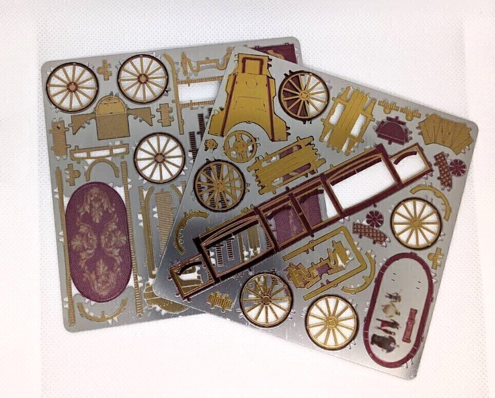 細部まで再現されたクラシックな馬車デザインが美しい、**カラー仕様のメタリックナノパズル ゴーストライダー(Ghost Car)**です。