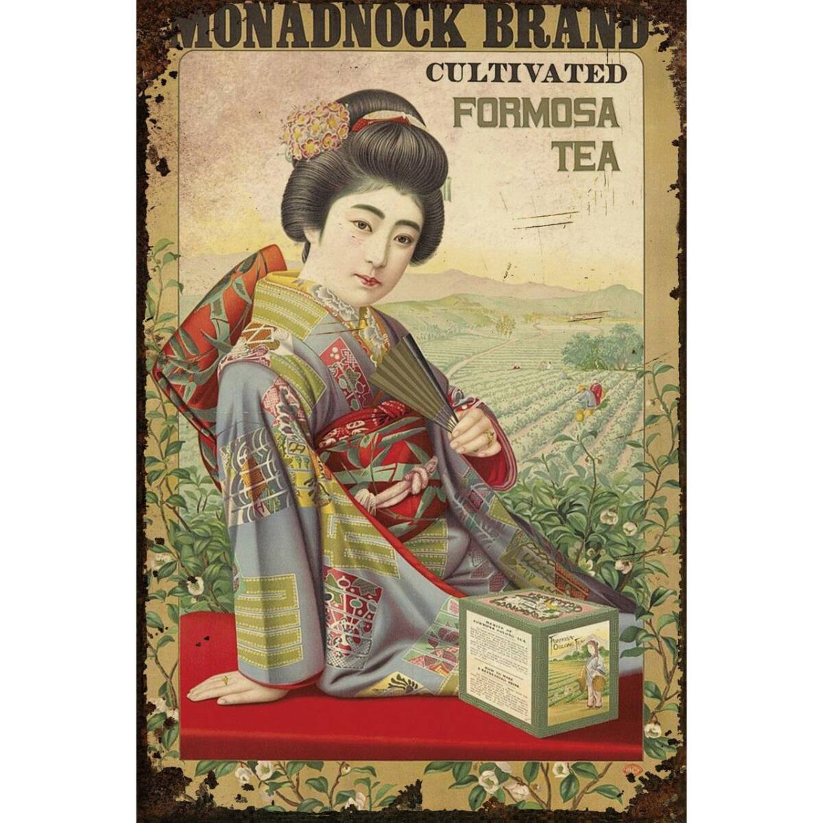 Monadnock Brand Formosa Tea(モナドノックブランド 台湾茶)のクラシック広告をデザインしたブリキ看板です。