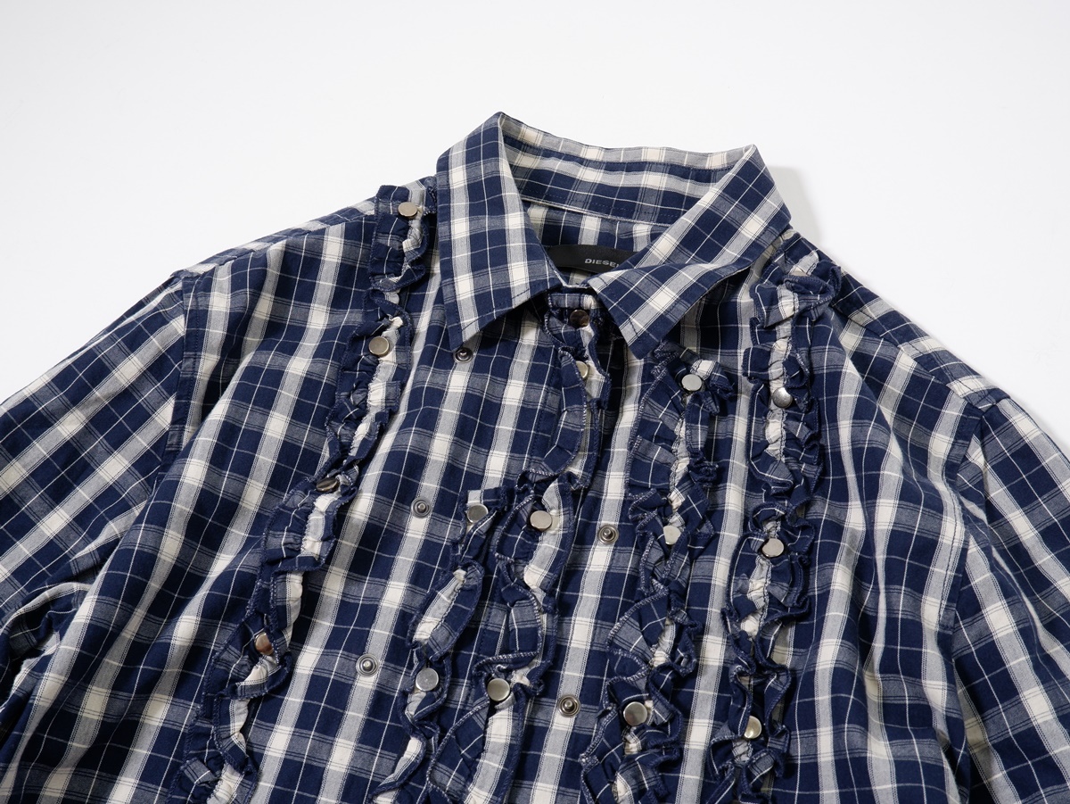 【素材感】一般的なコットンシャツ地 【透け感】なし 【裏地】なし 【ストレッチ】なし 【開閉デザイン】ボタン 【付属品(取り外し可)】なし 【商品情報】フリル部分はスナップで着脱可能。ディーゼルジャパン国内正規品。 |